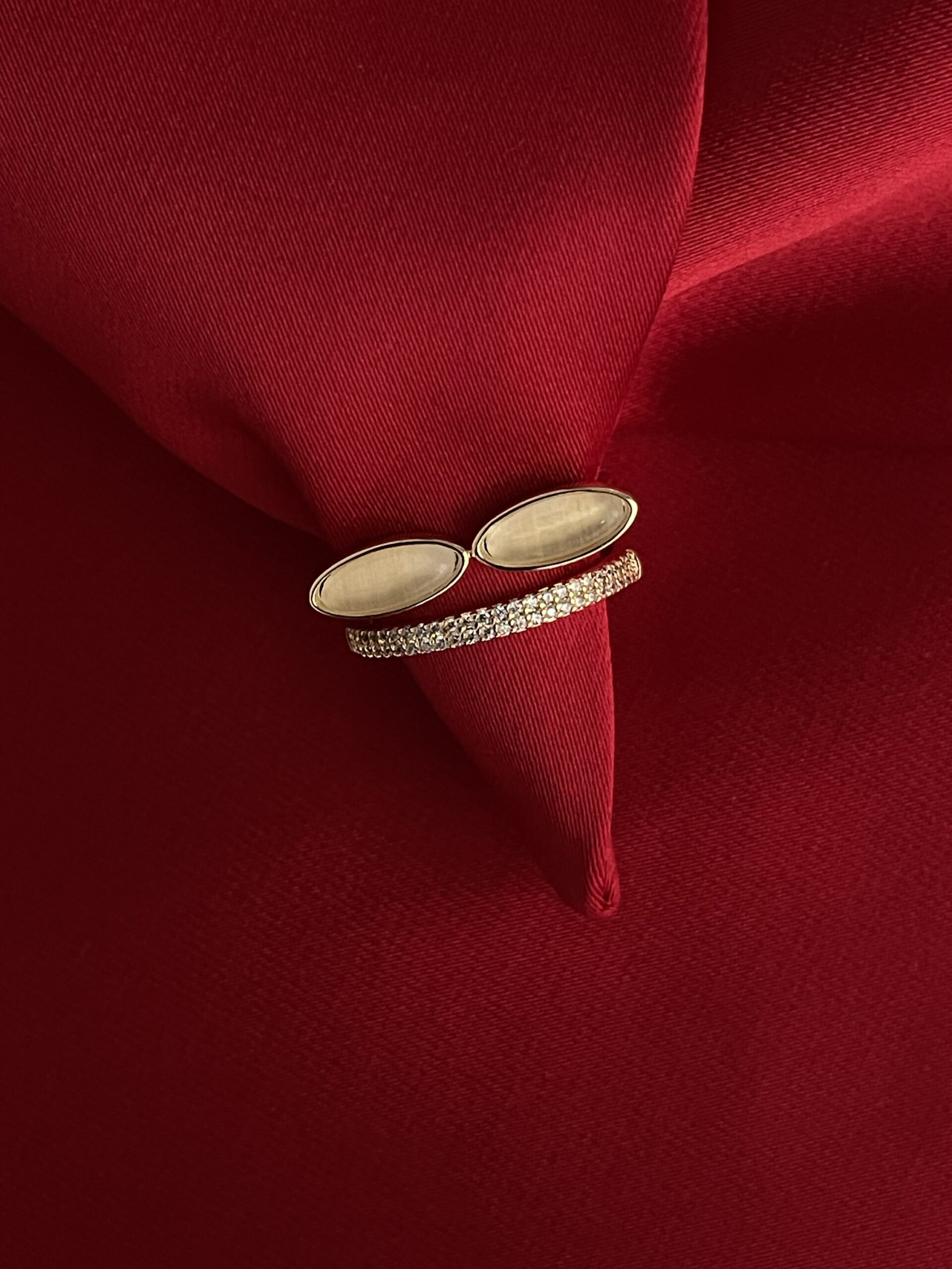 Glam Serisi – Zirkon Taşlı Sedefli Gold Ayarlanabilir Yüzük