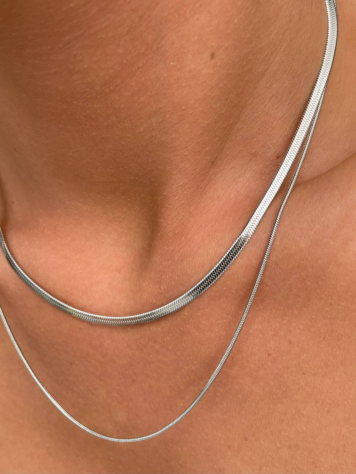 Gümüş İkili İtalyan Zincir Çelik Kolye