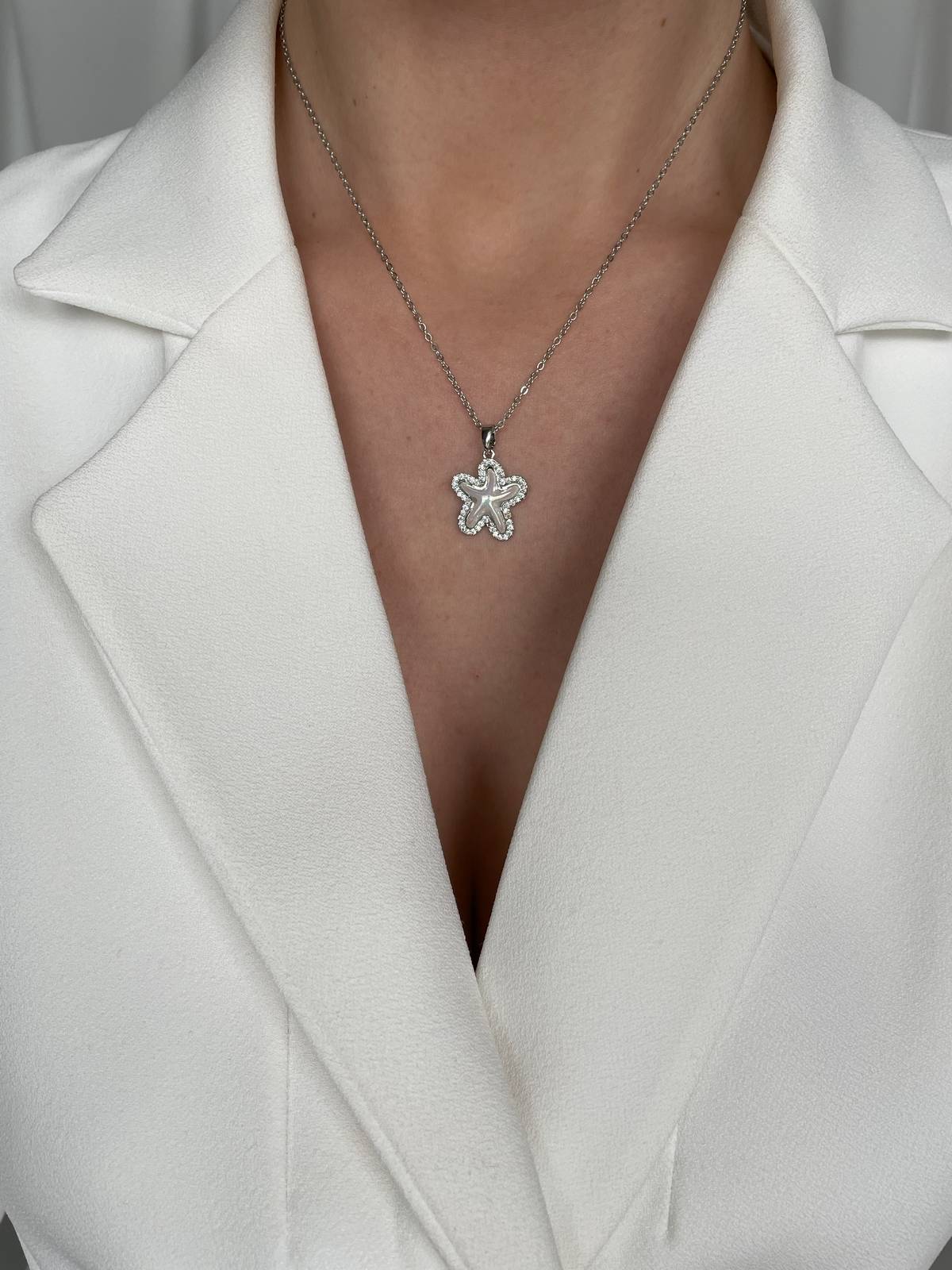 Gümüş Zirkon Taşlı Deniz Yıldız Çelik Kolye