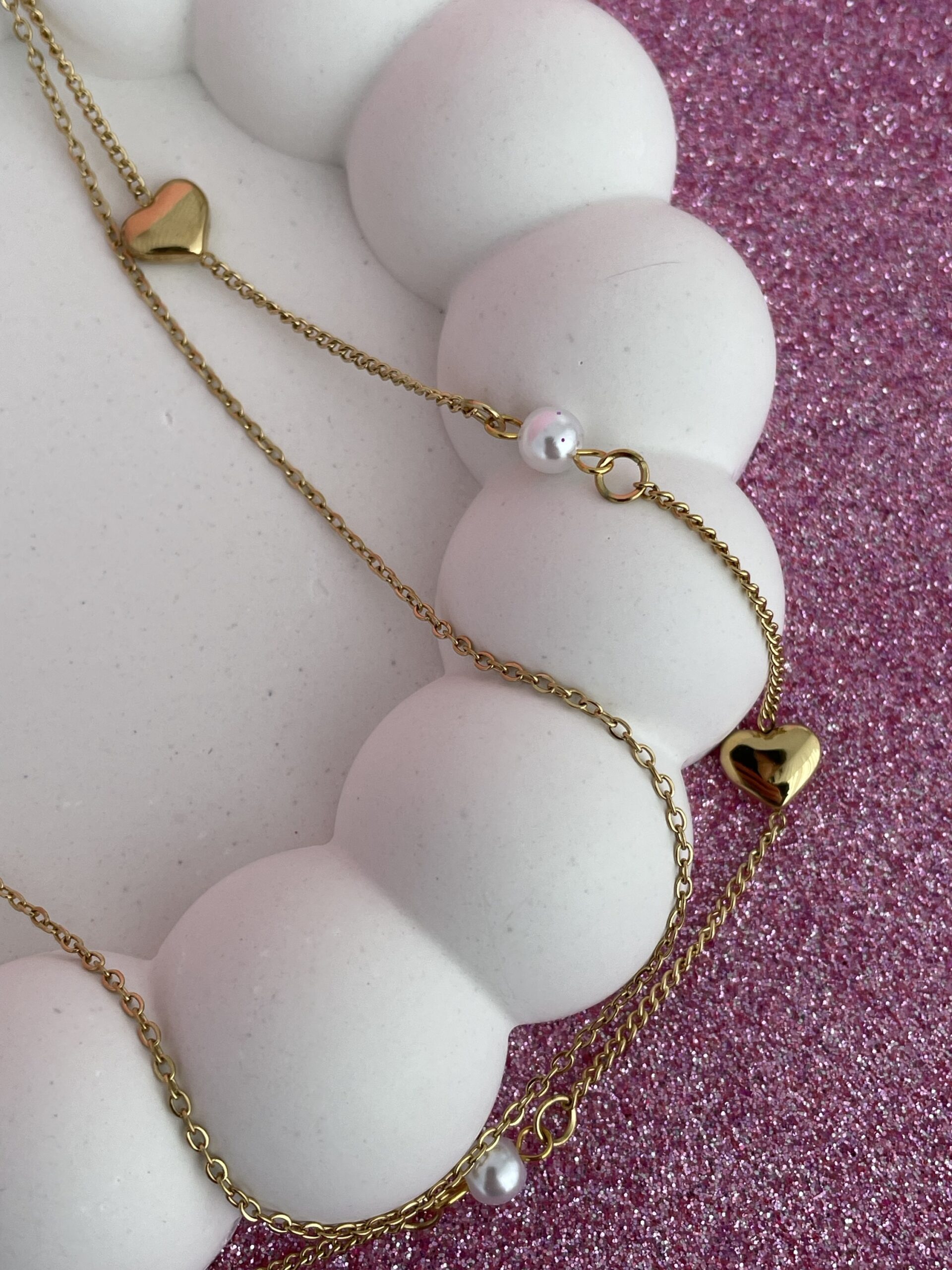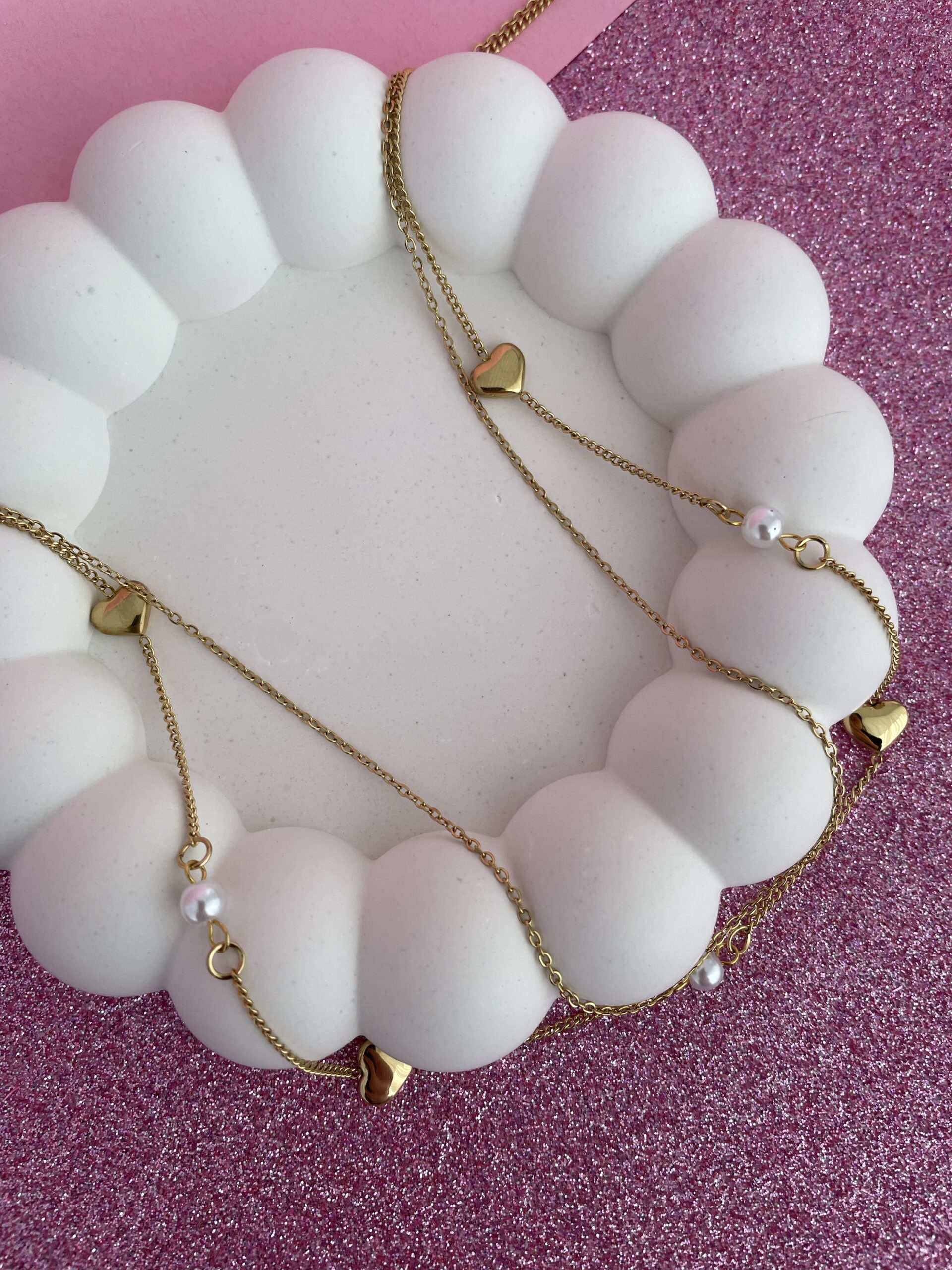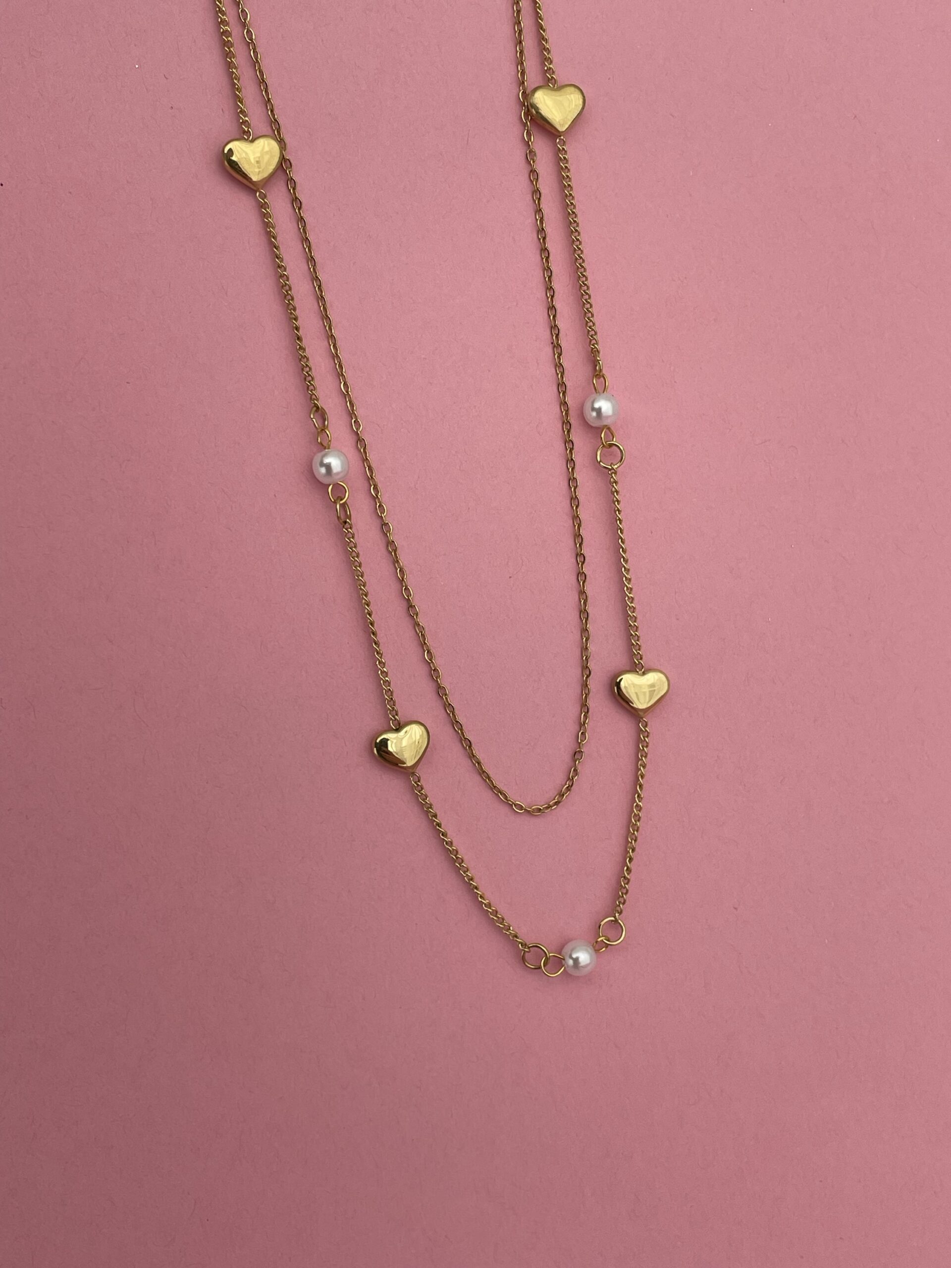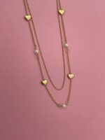 In Love Seri Çelik Mini Kalpli İkili Gold Kolye