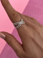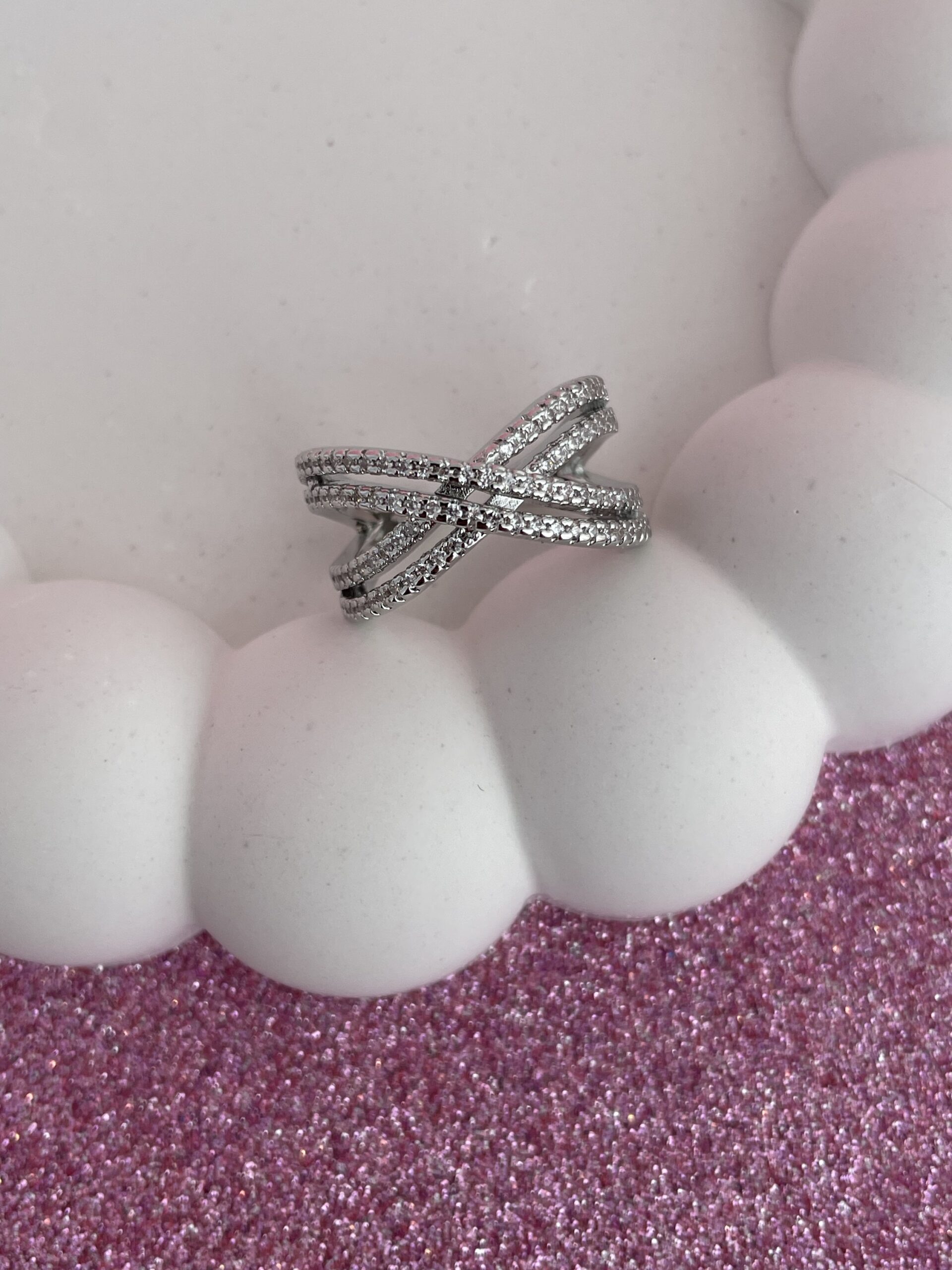 In Love Seri Çift Sıra Zirkon Taşlı X Tasarım Gümüş Ayarlanabilir Yüzük