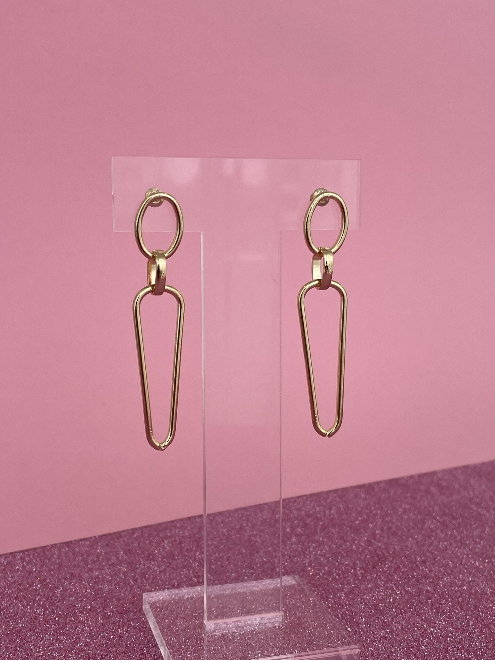 In Love Seri Geometrik Desen Sallantılı Gold Küpe