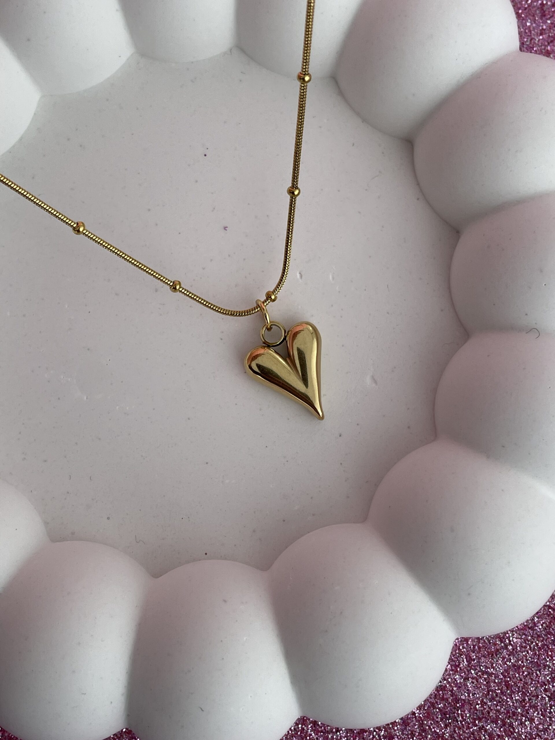 In Love Seri Kalp Tasarım Gold Top Zincir Kolye
