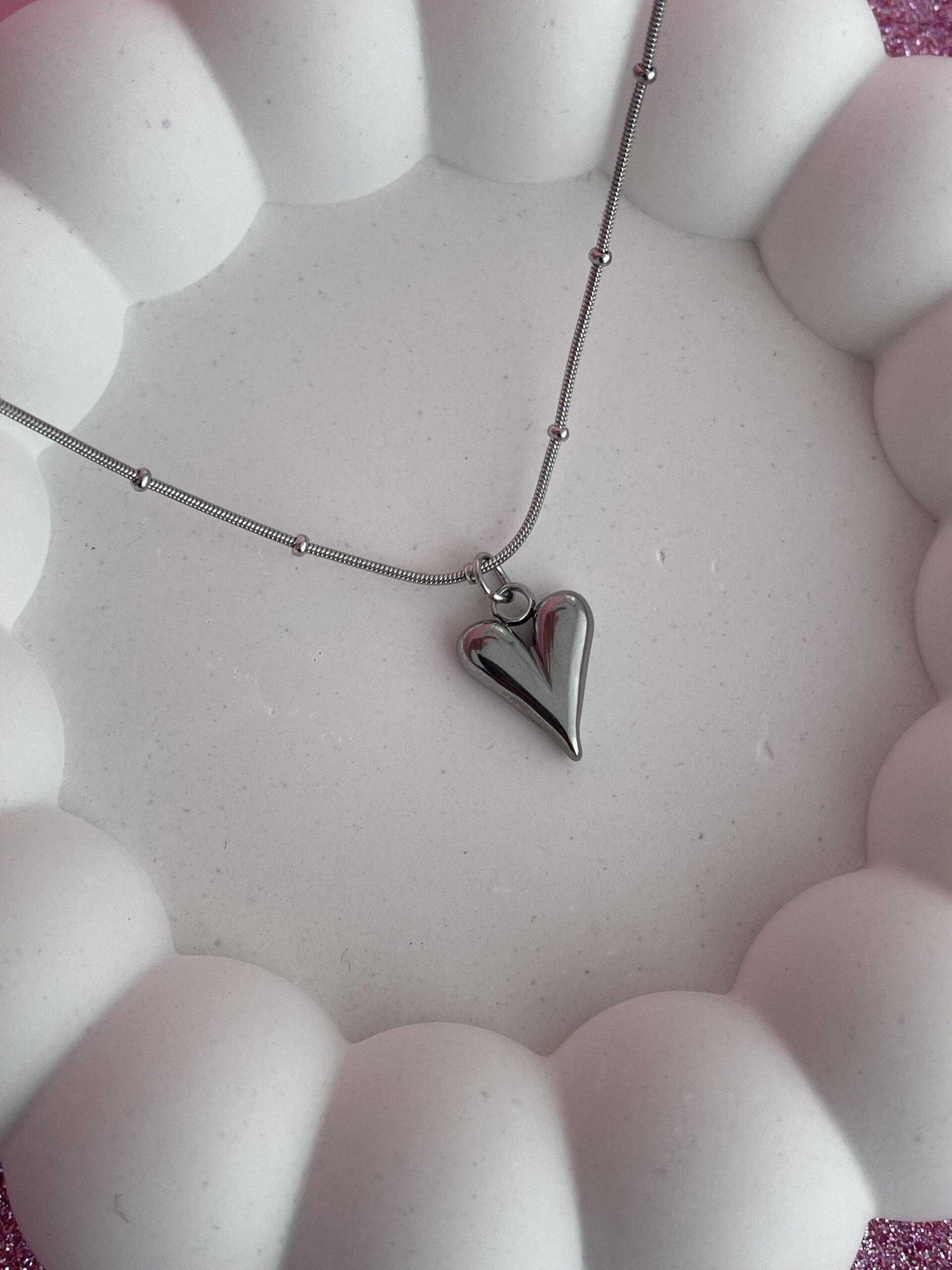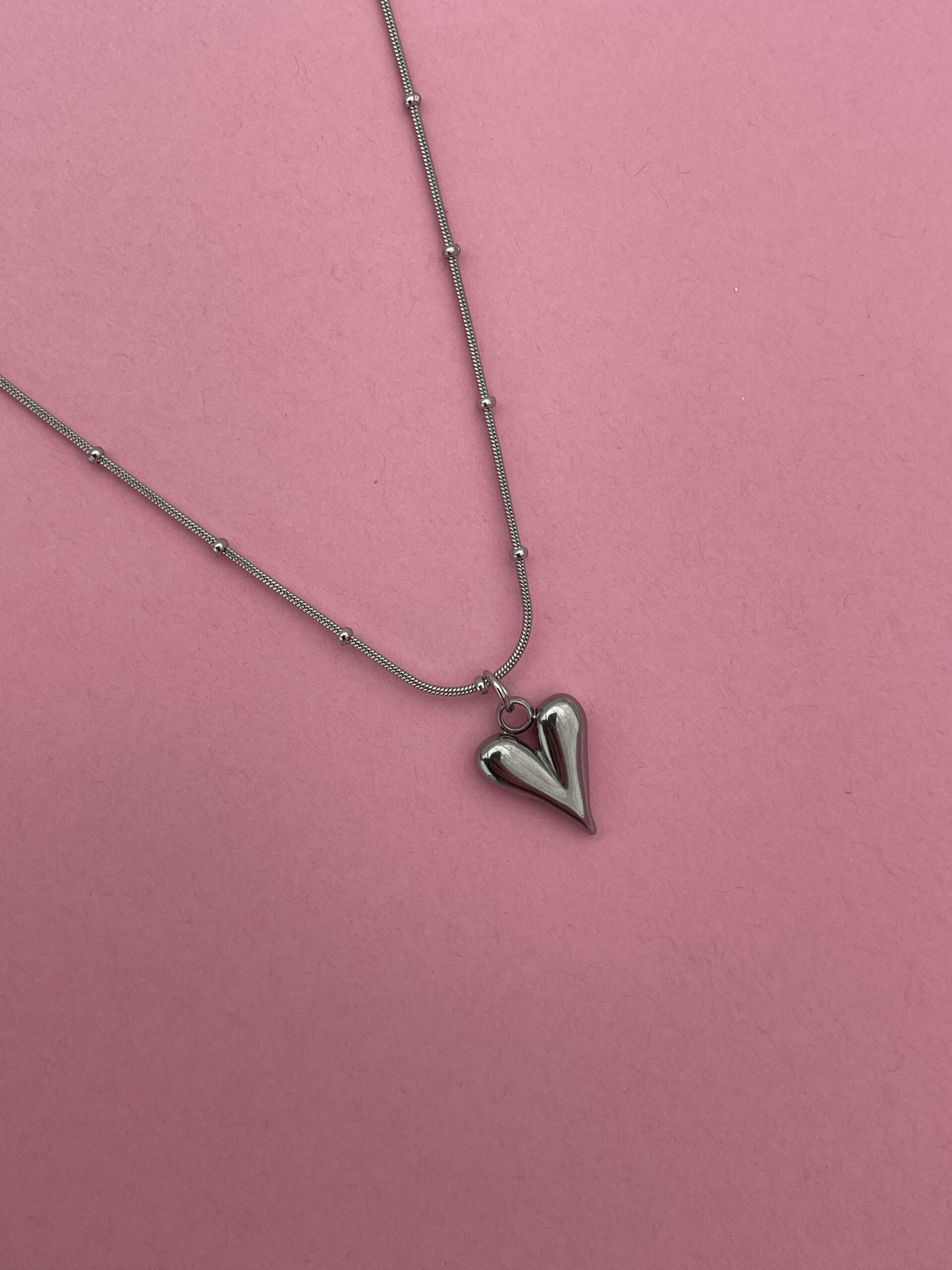In Love Seri Kalp Tasarım Gümüş Top Zincir Kolye