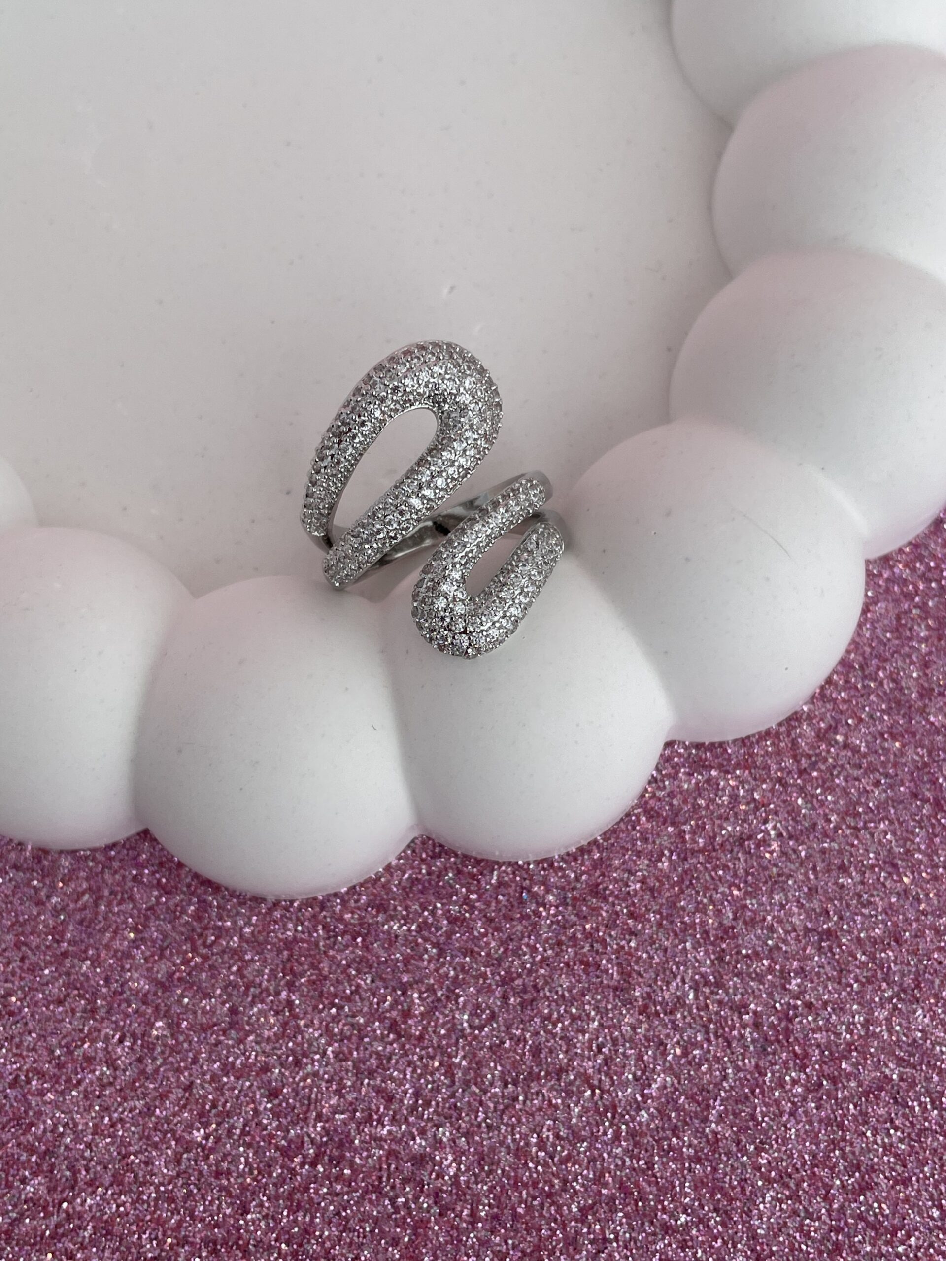 In Love Seri Zirkon Taşlı Geometrik Desen Gümüş Ayarlanabilir Yüzük