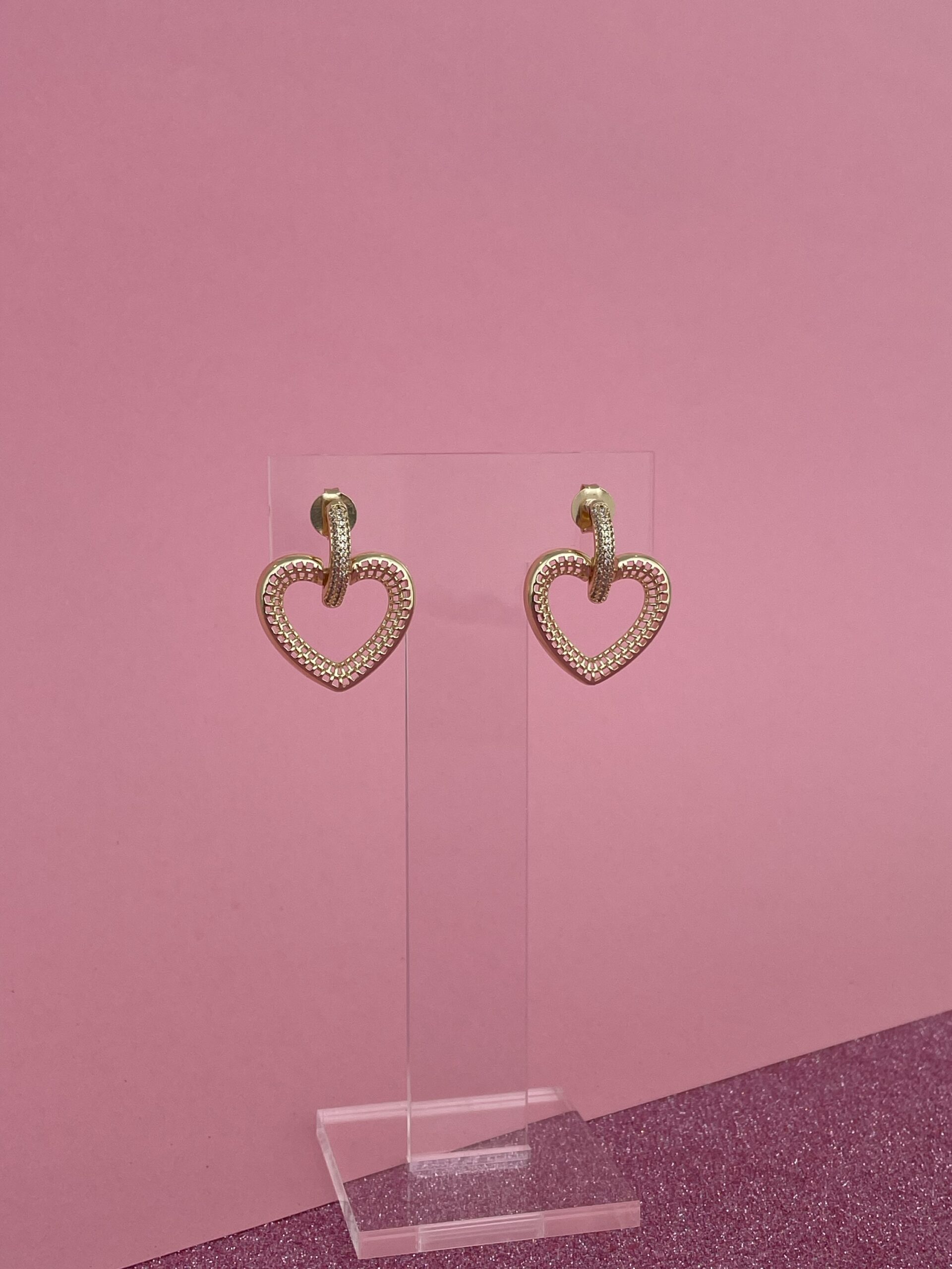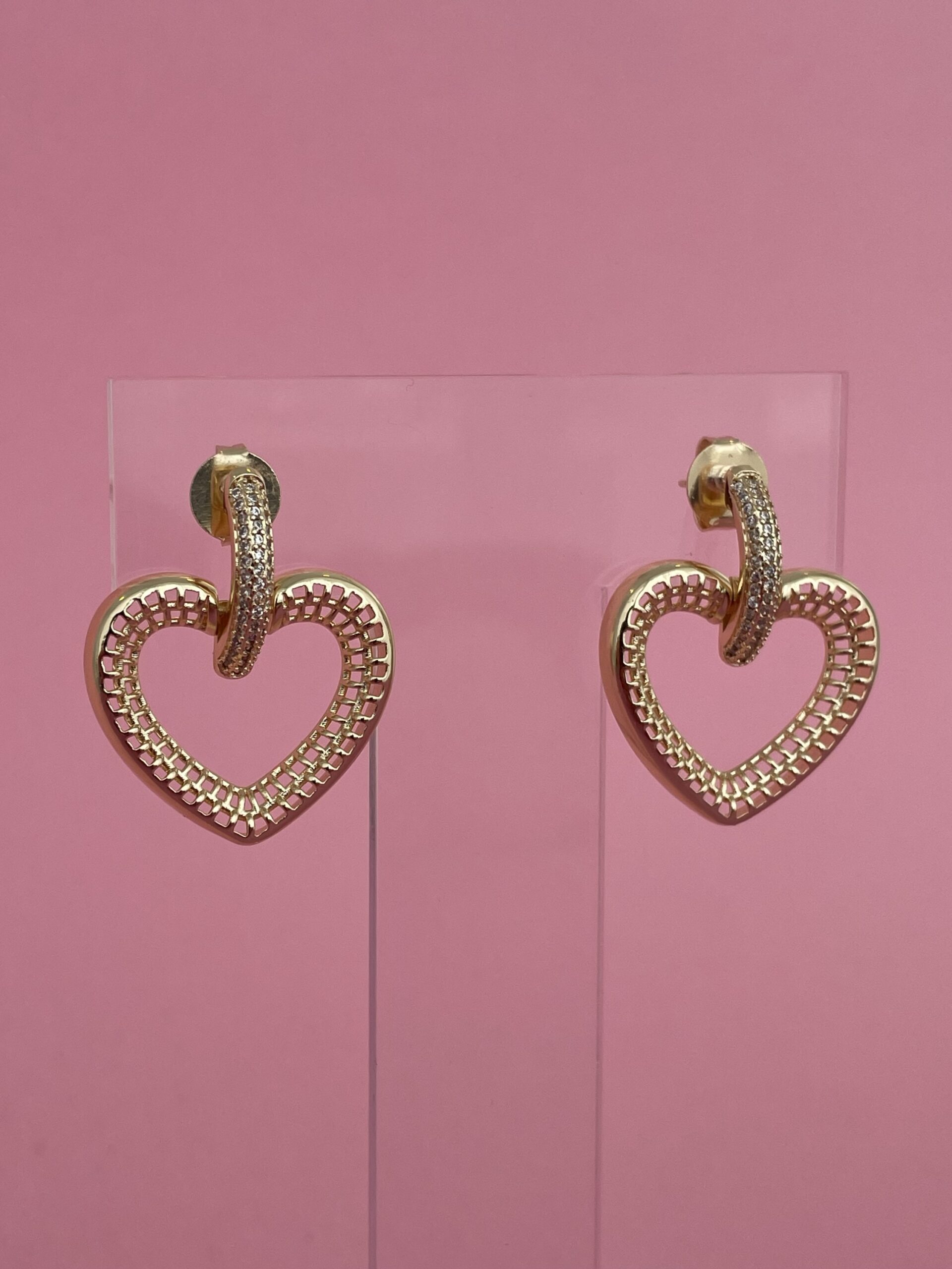 In Love Seri Zirkon Taşlı Kalp Tasarım Gold Küpe