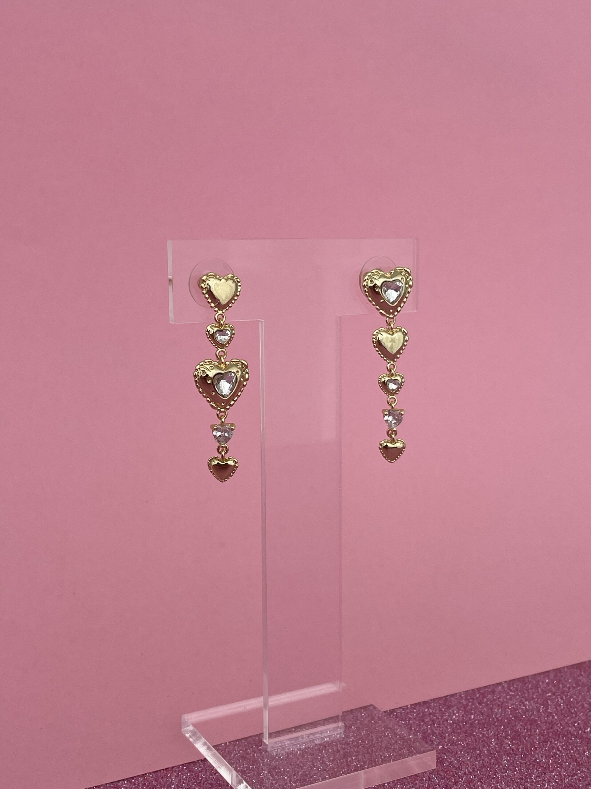 In Love Seri Zirkon Taşlı Kalp Tasarım Gold Küpe