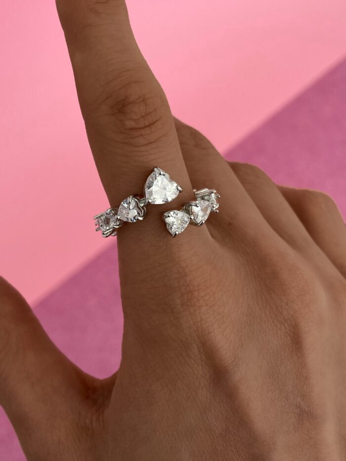 In Love Seri Zirkon Taşlı Kalp Tasarım Gümüş Ayarlanabilir Yüzük