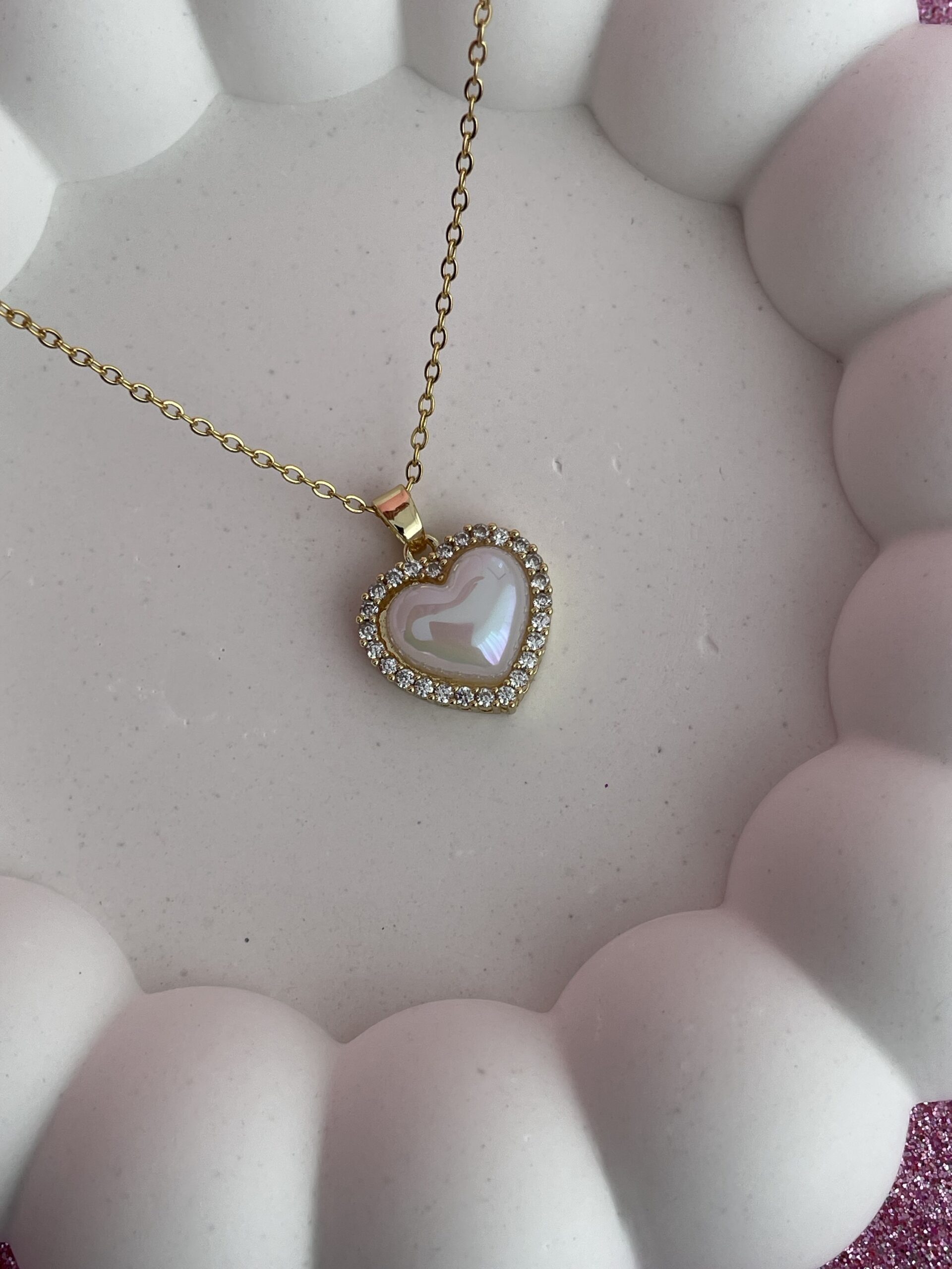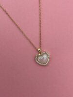 In Love Seri Zirkon Taşlı Sedefli Kalp Tasarım Gold Kolye