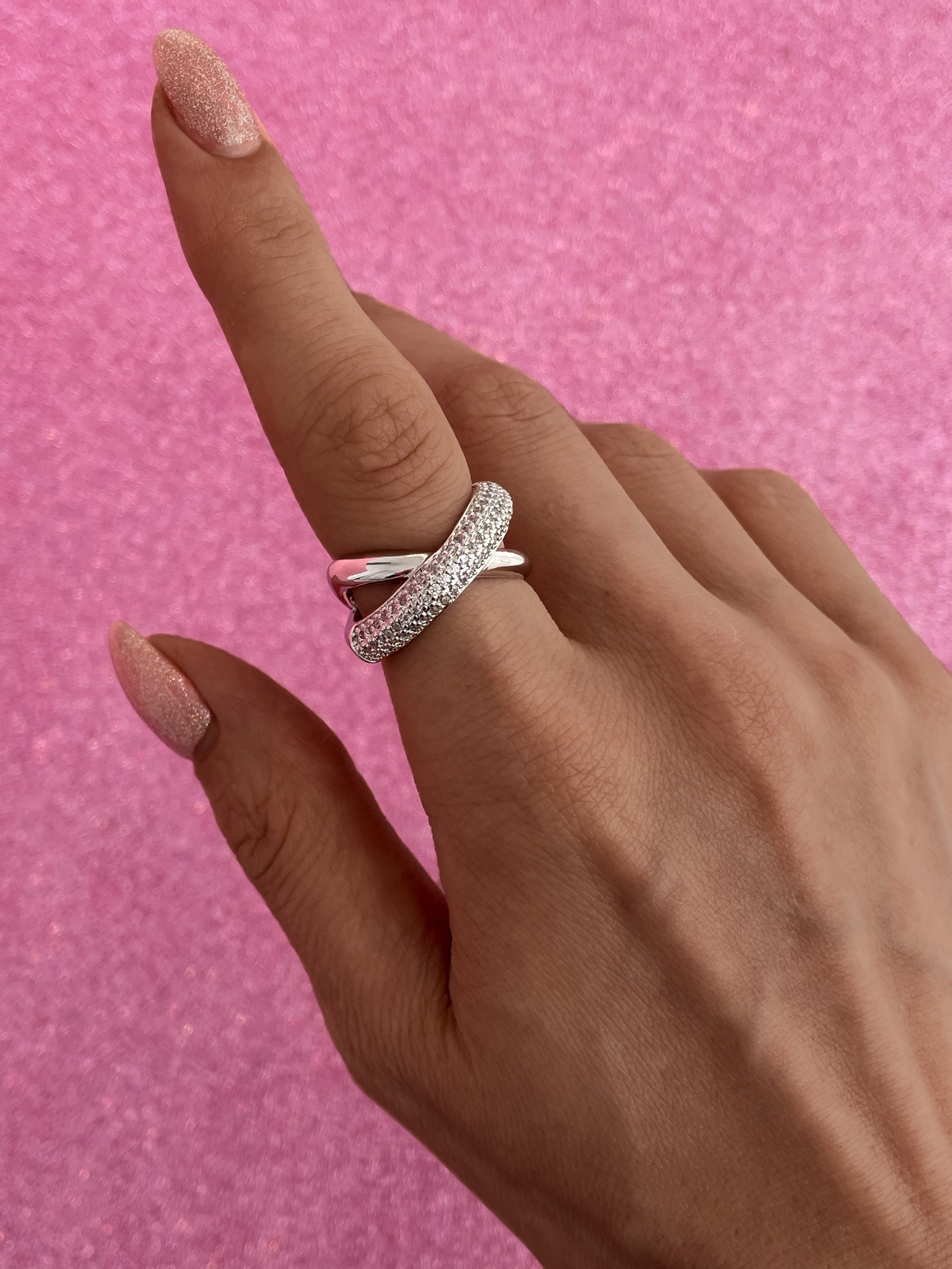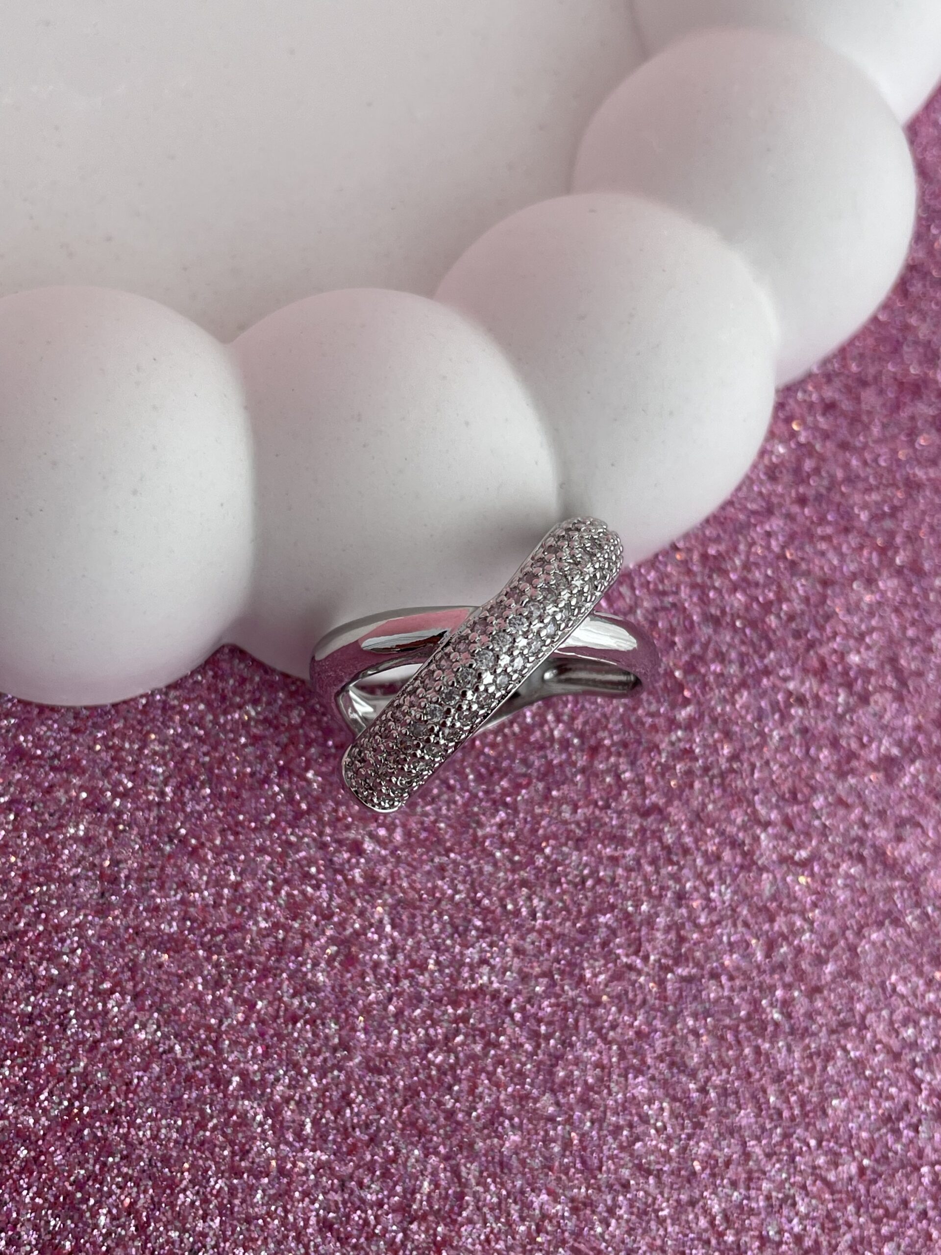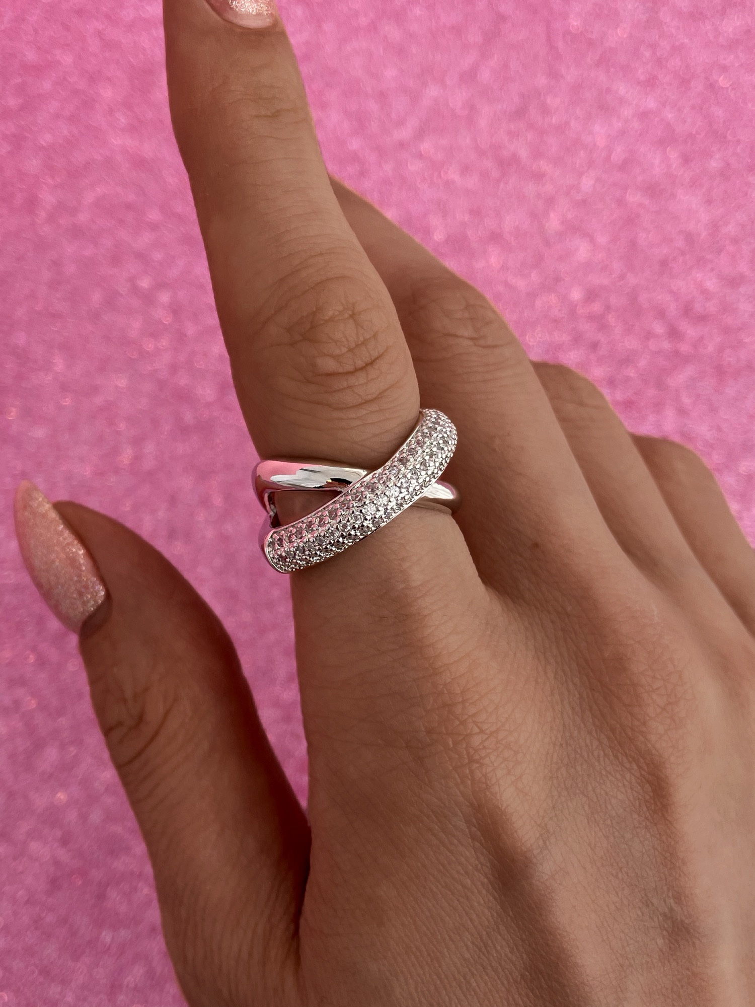In Love Seri Zirkon Taşlı X Tasarım Gümüş Ayarlanabilir Yüzük