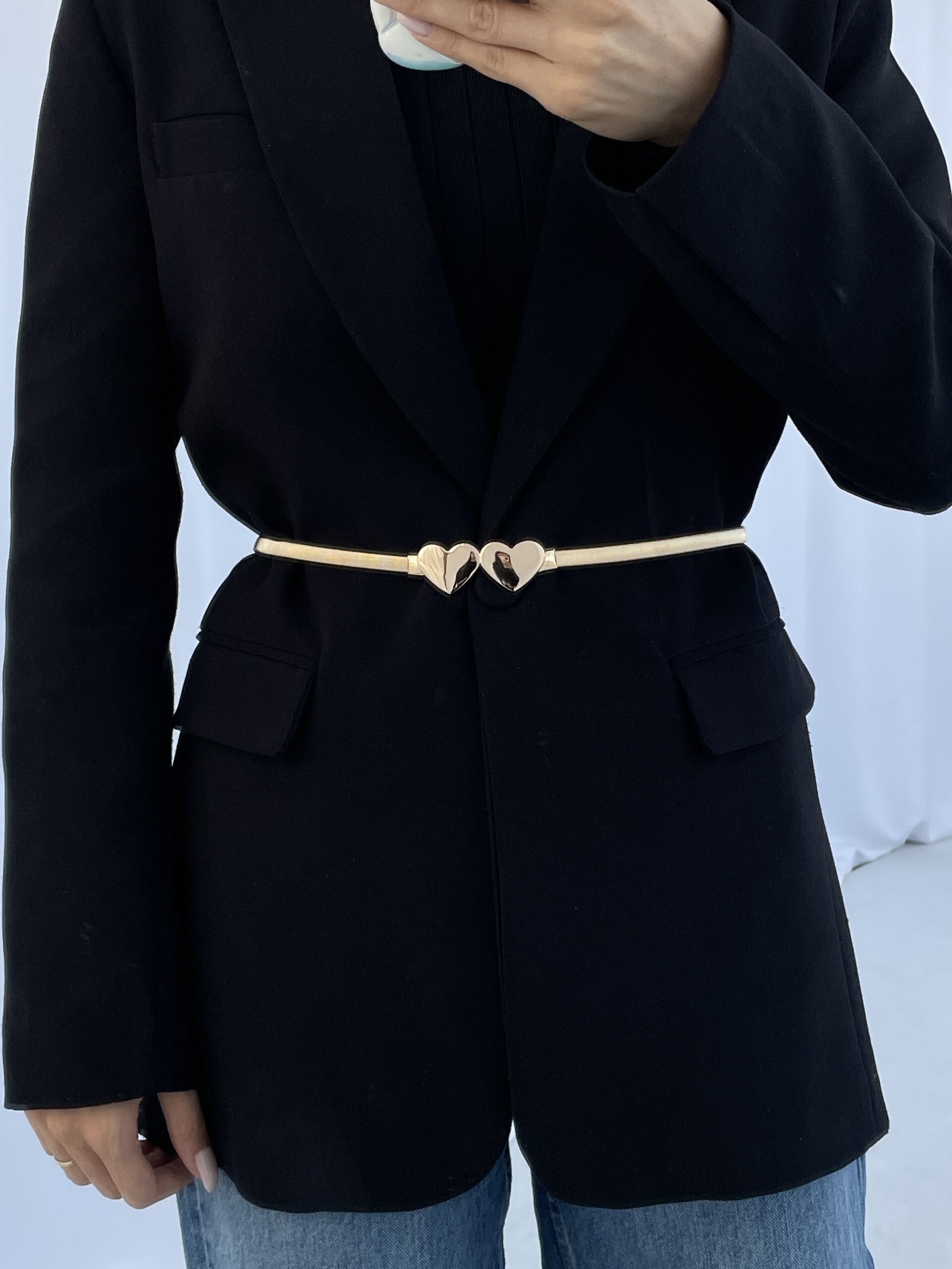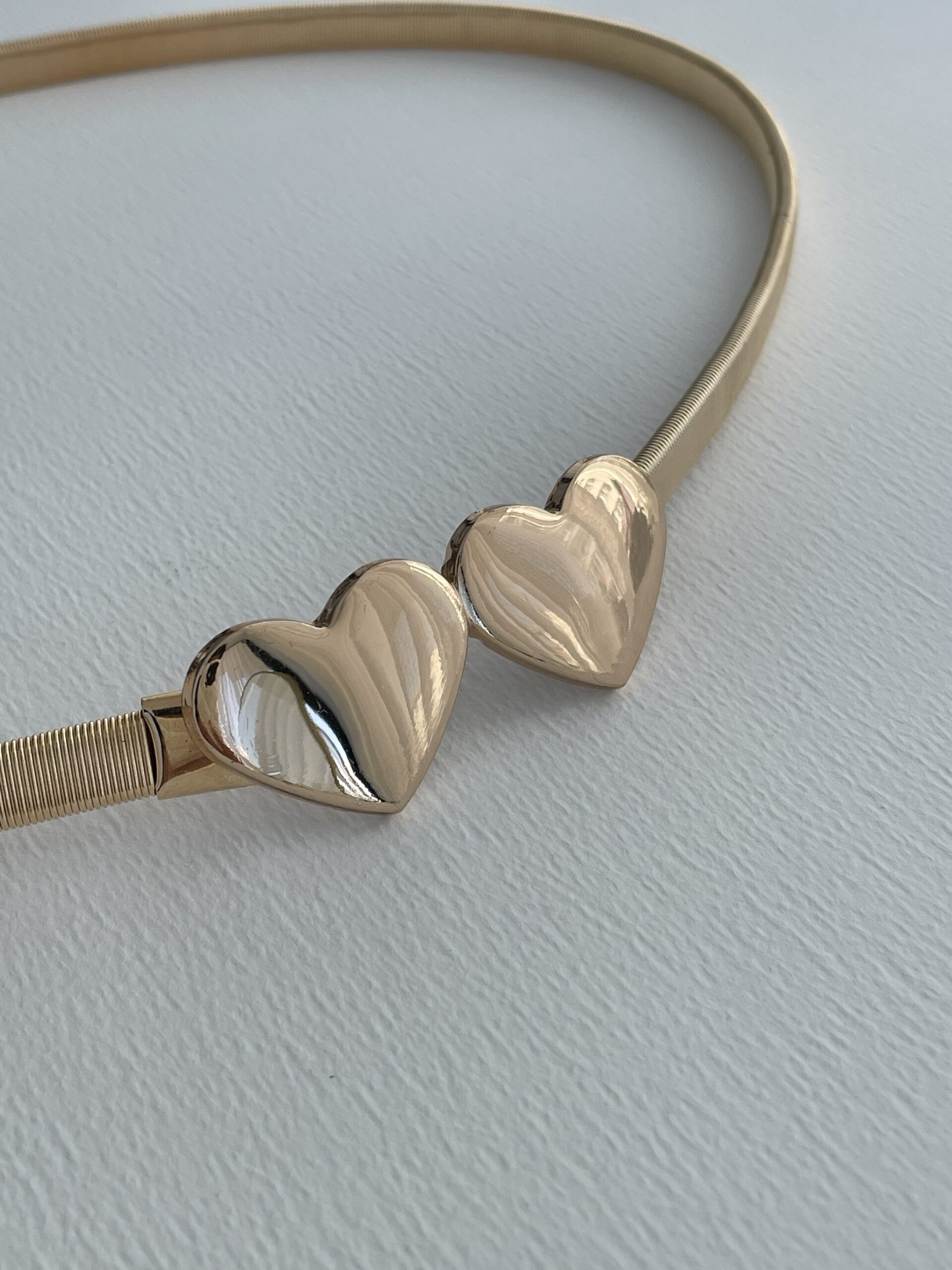 Kalp Metal Tasarım Tırtık Desen Lastikli Gold Kemer
