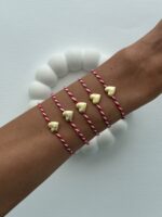 Kalp Tasarım Kırmızı Beyaz Marteniçka İp Bileklik