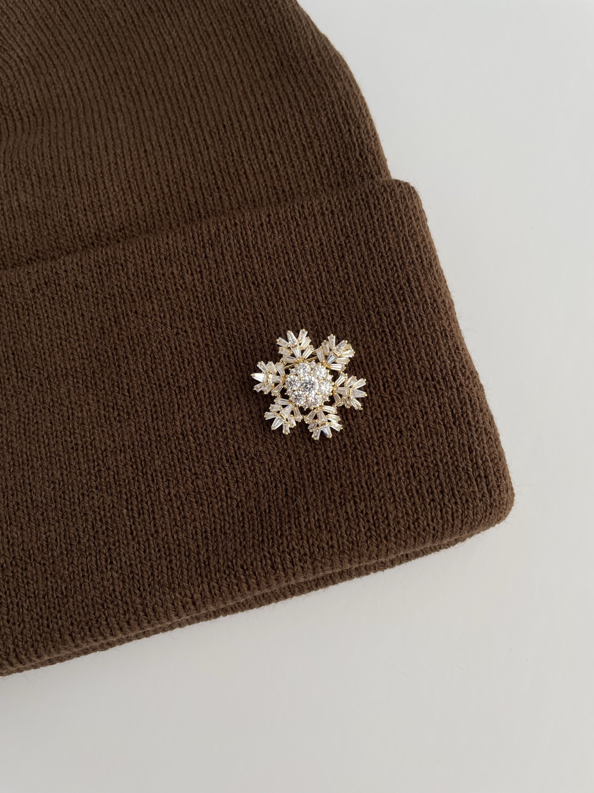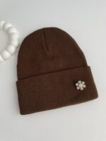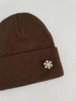 Kar Desen Broşlu Kahverengi Bere