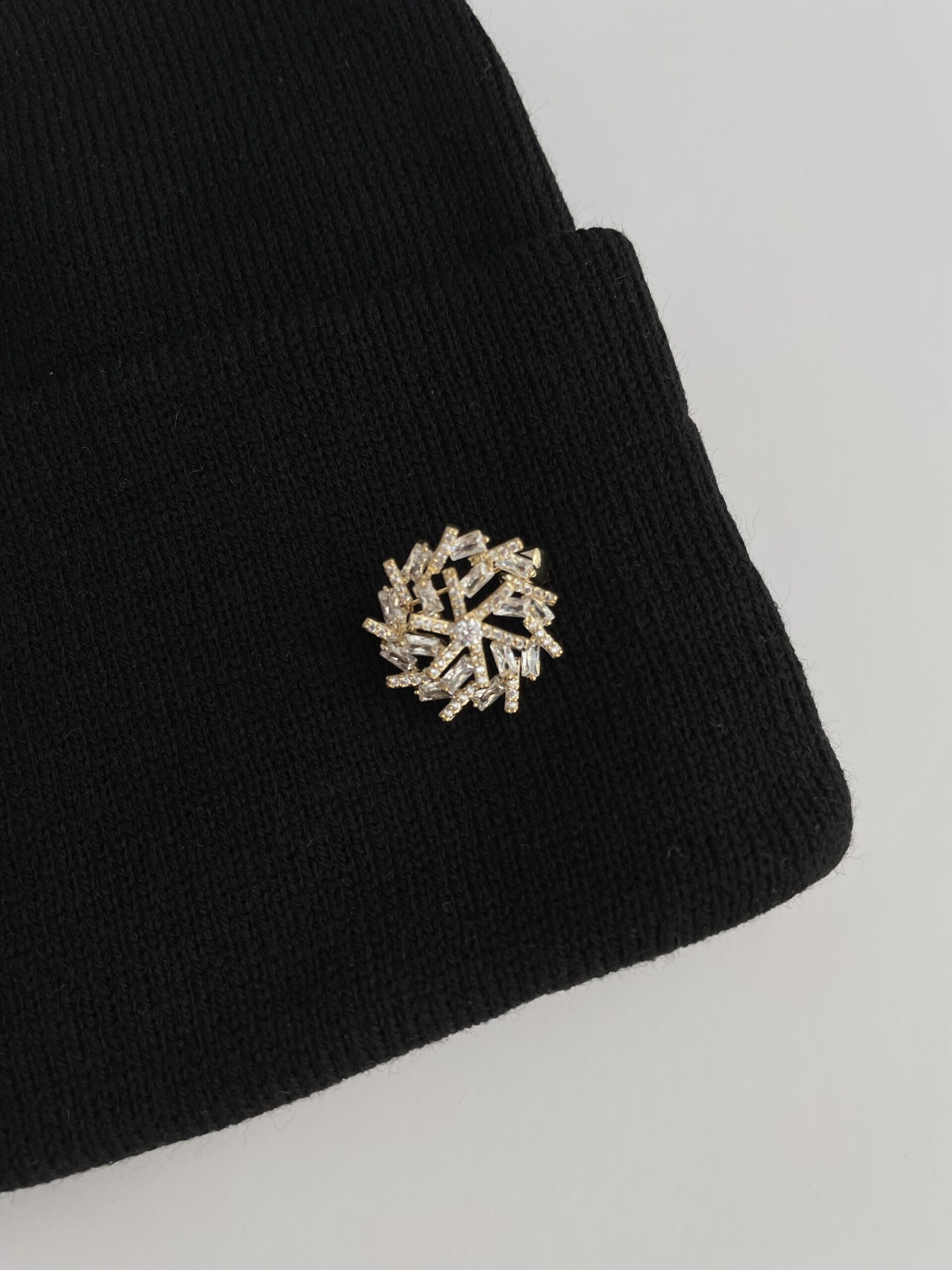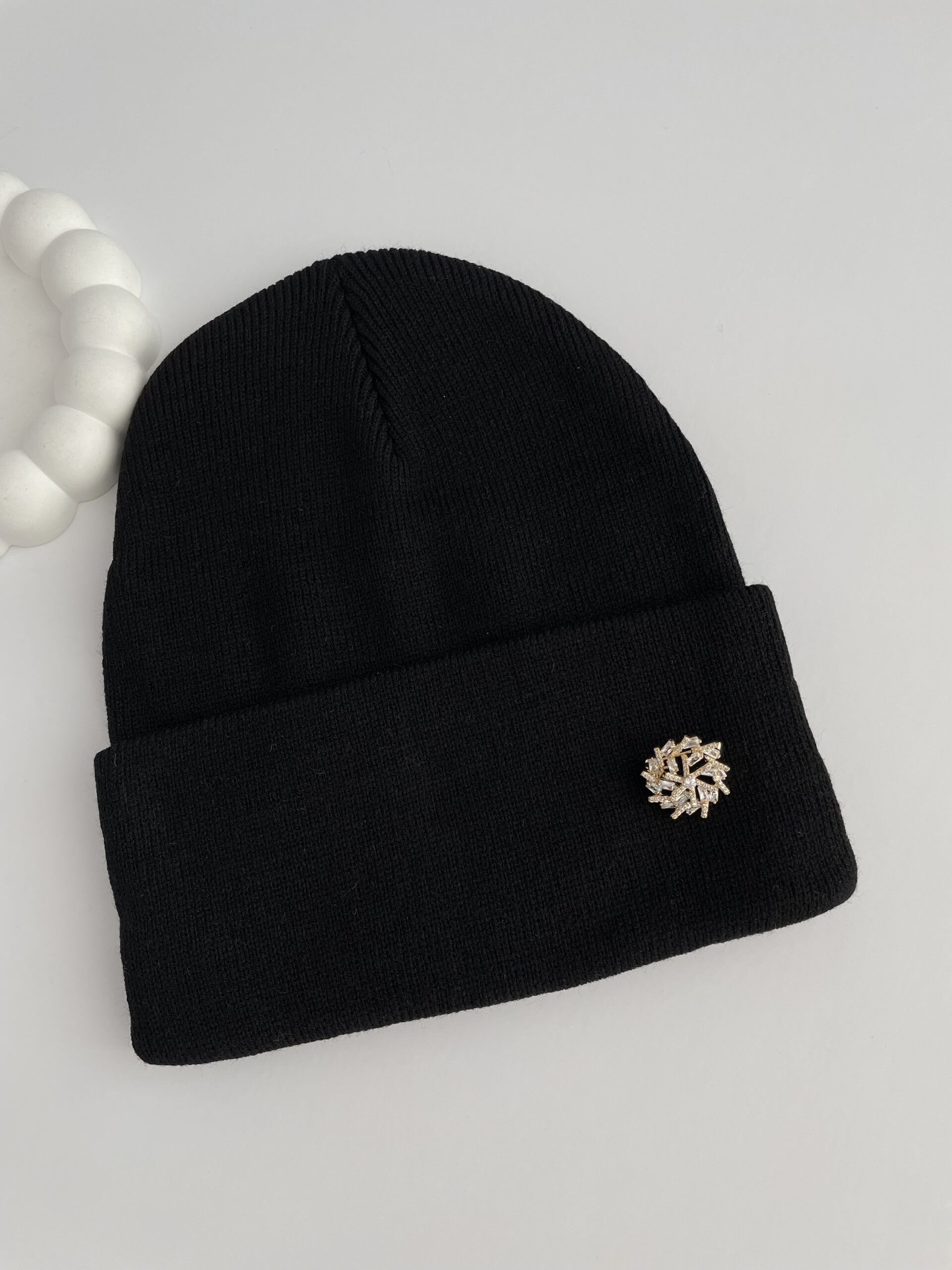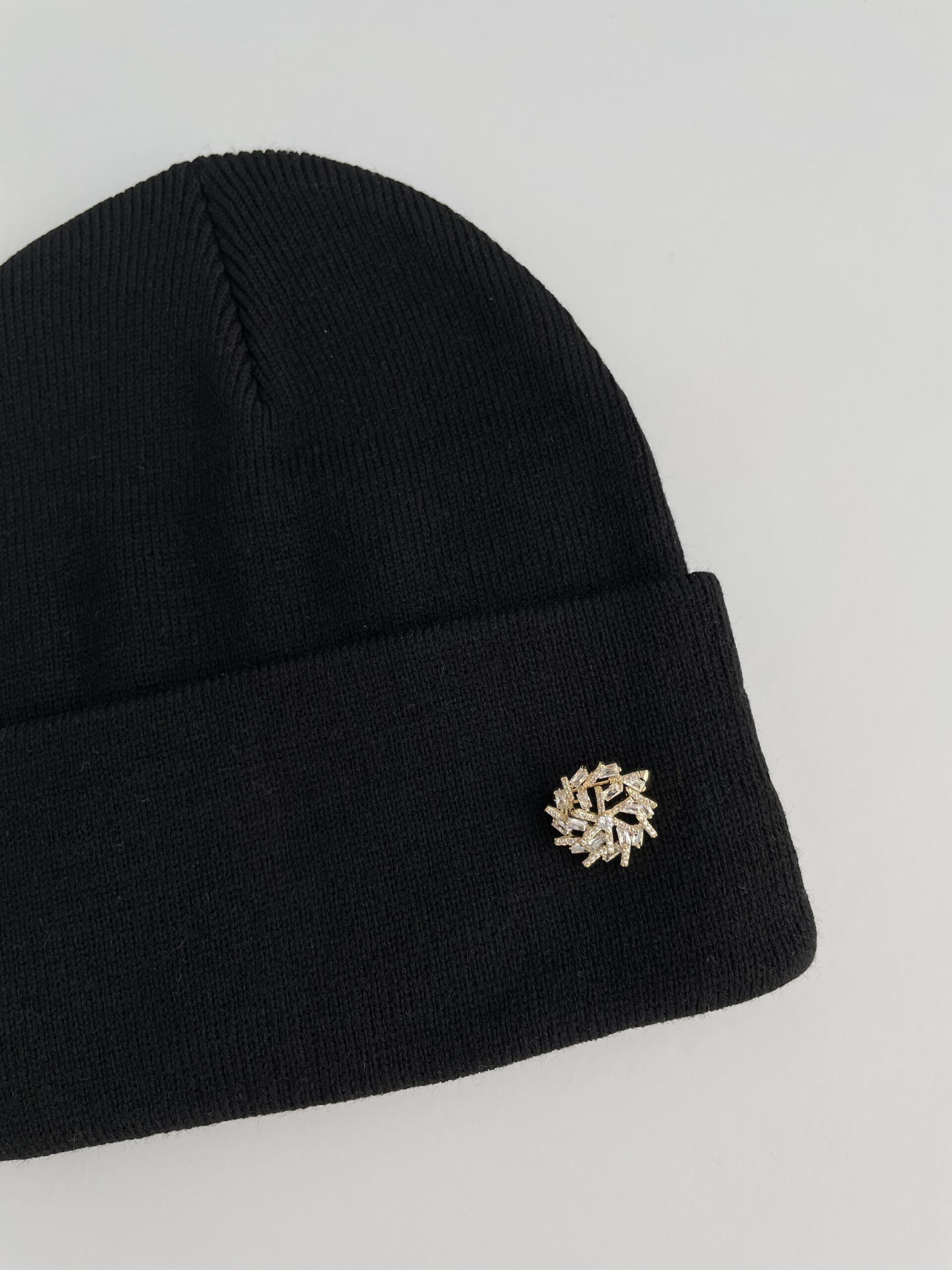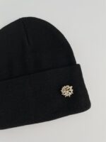 Kar Desen Broşlu Siyah Bere
