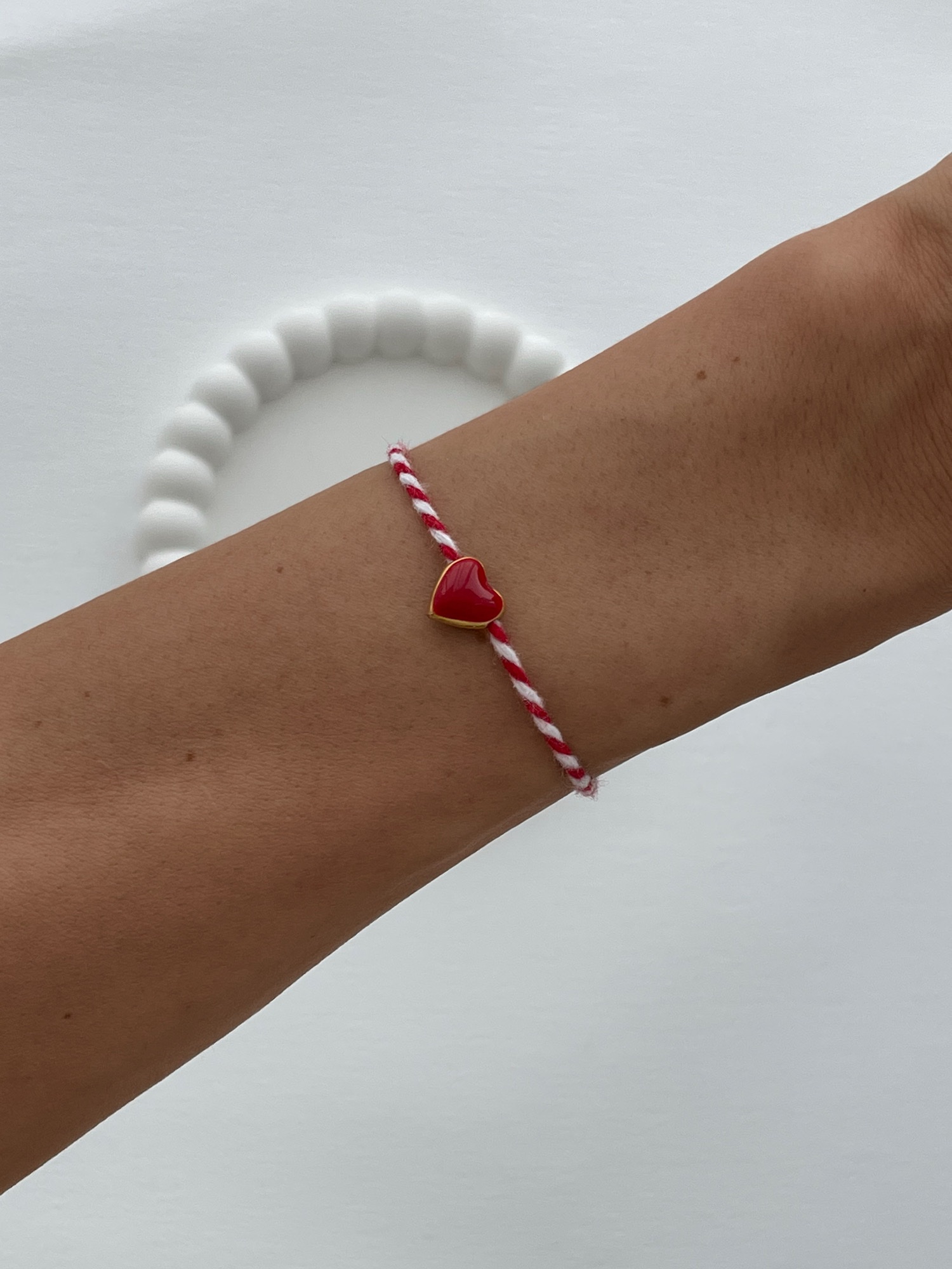 Kırmızı Kalp Tasarım Kırmızı Beyaz Marteniçka İp Bileklik