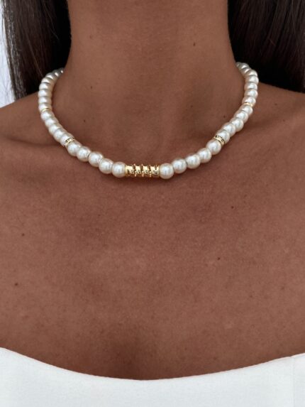 Özel Seri Spiral Detaylı Zirkon Taşlı Gold İnci Kolye