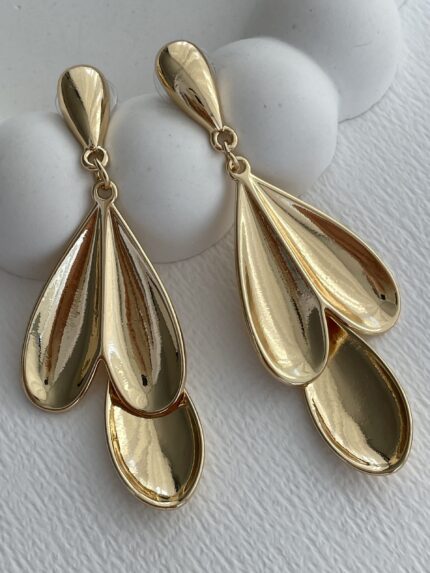 Özel Seri Maksi Boy İkili Yaprak Tasarım Gold Küpe