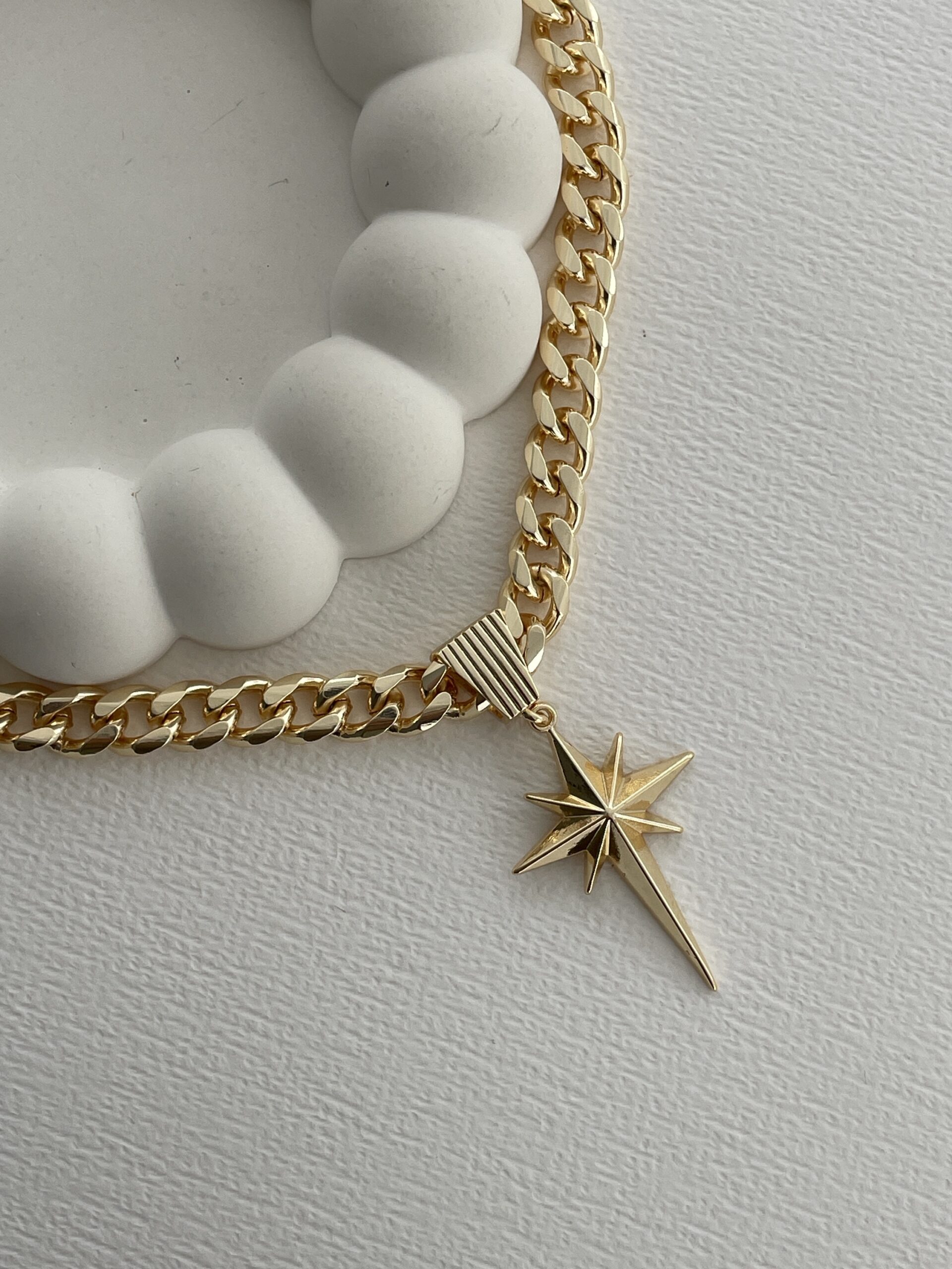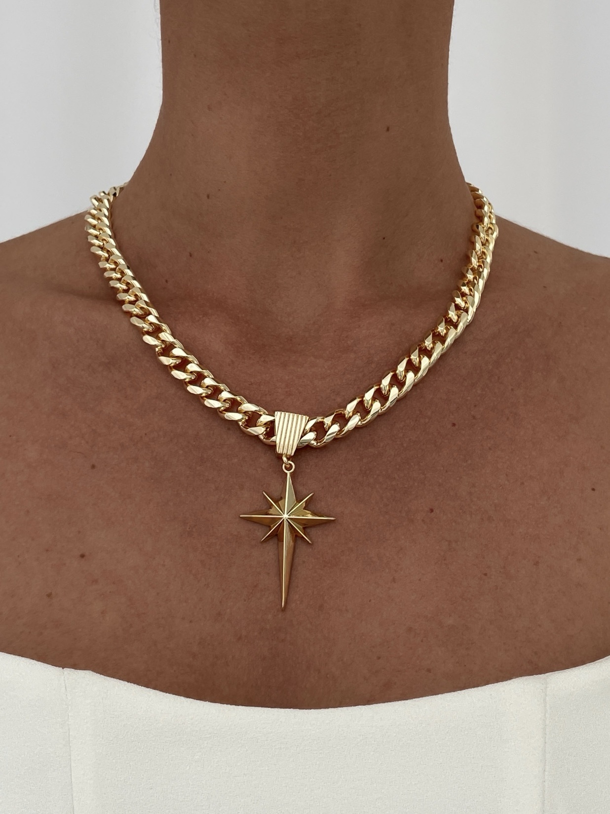 Özel Seri Yıldız Tasarım Gold Gurmet Zincir Kolye