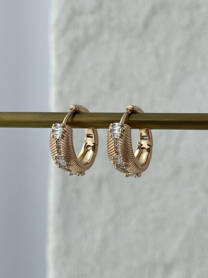 XUPING Baget Taşlı Tırtık Desen Gold Küpe