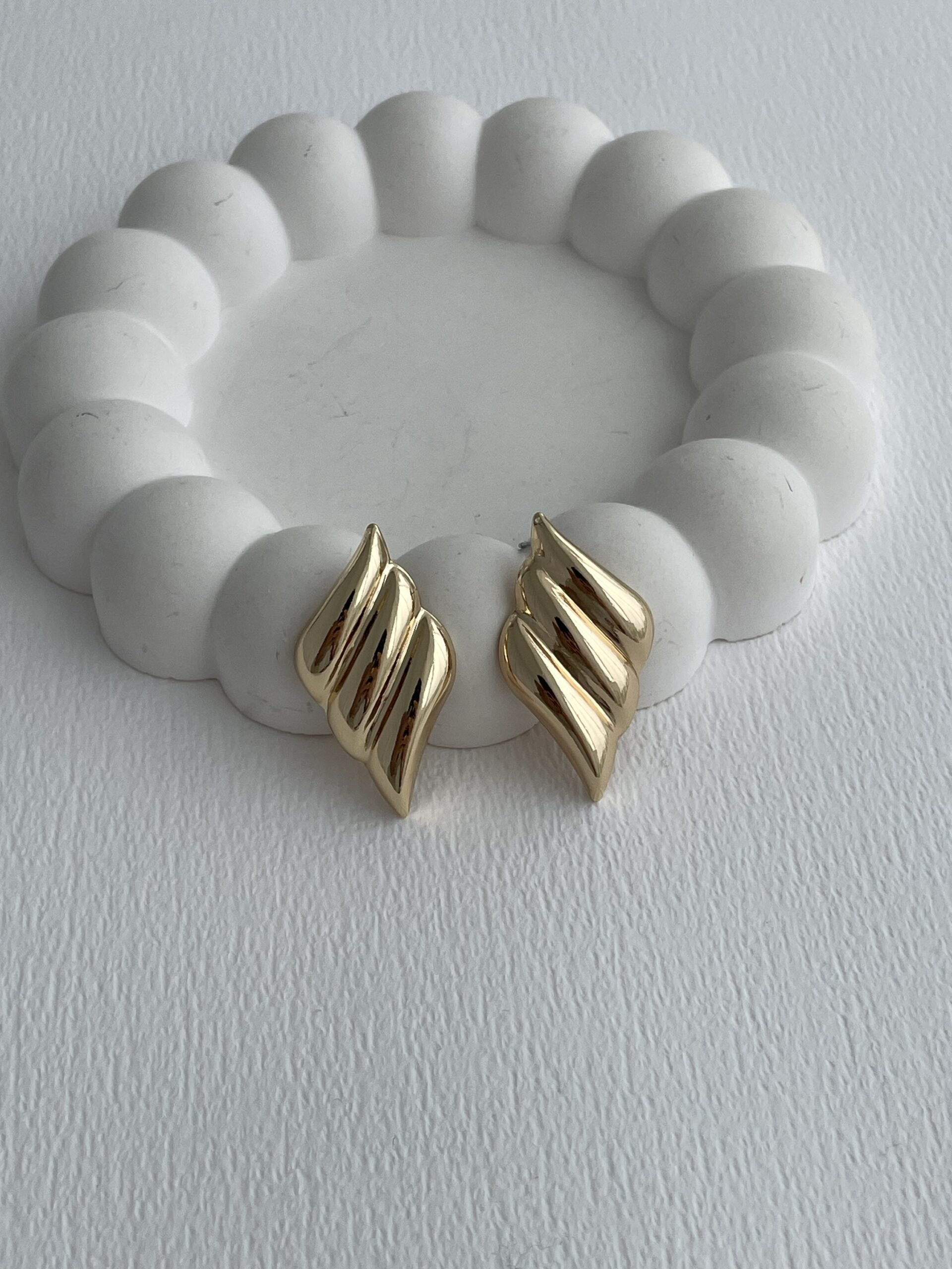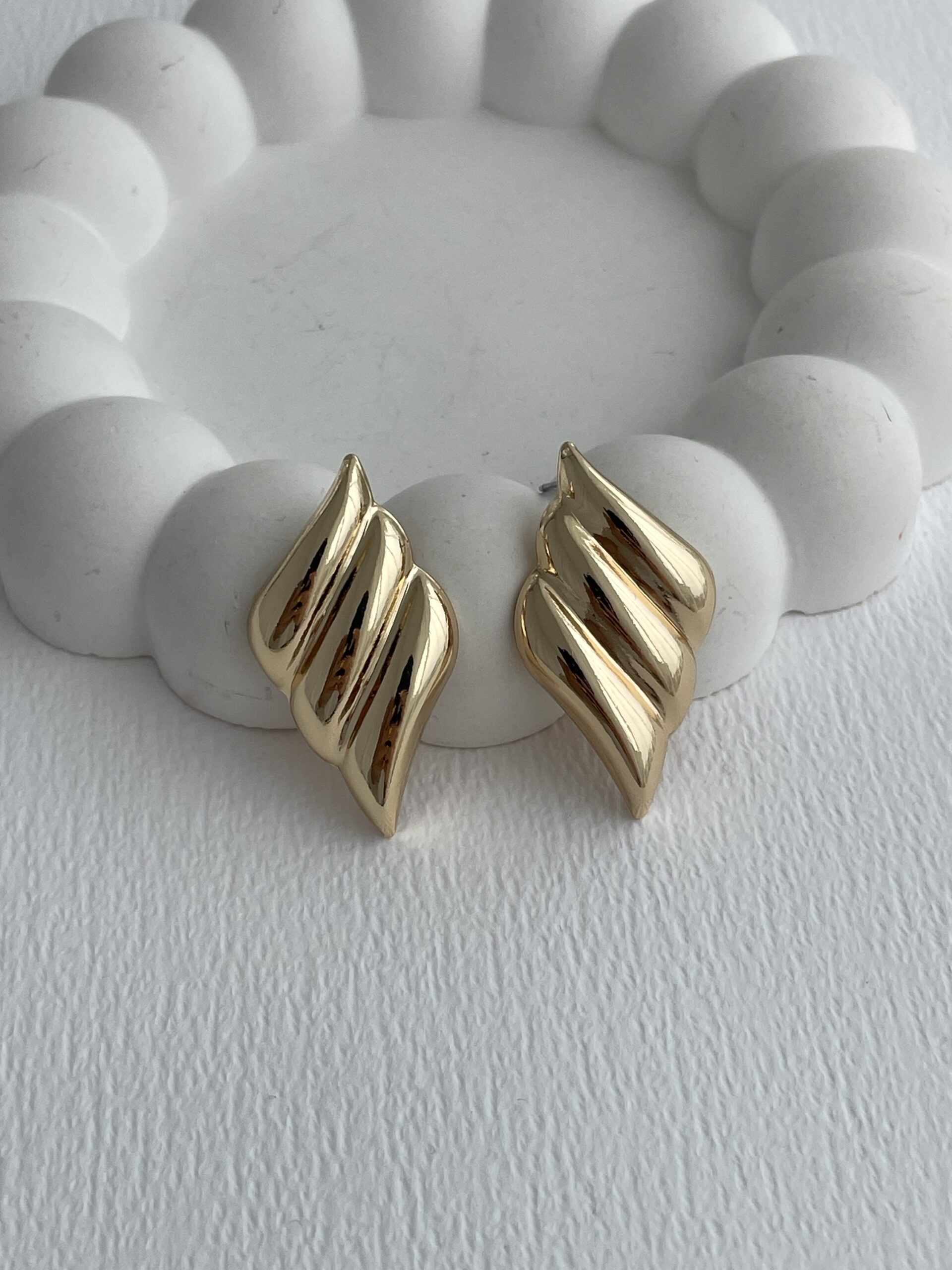Özel Seri Geometrik Yaprak Tasarım Gold Küpe