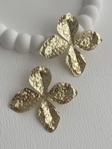 Özel Seri Desenli Maksi Boy Çiçek Tasarım Gold Küpe