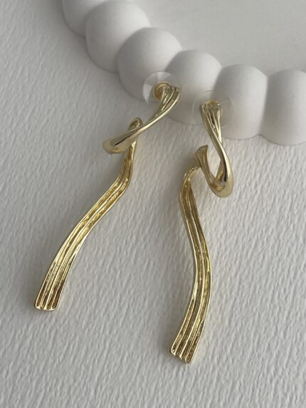 Özel Seri Kıvrımlı Maksi Boy Gold Küpe