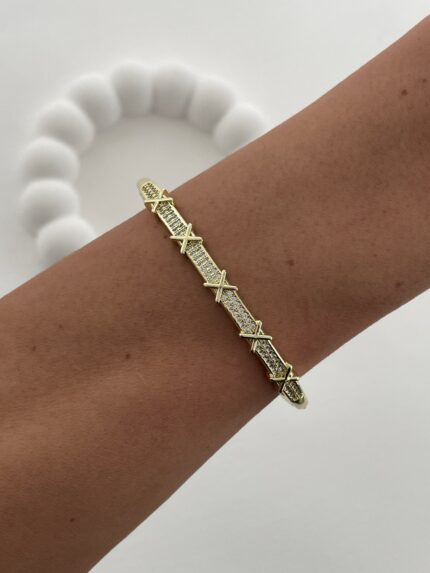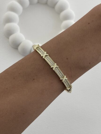 Özel Seri Zirkon Taşlı Küçük X Tasarım Gold Kelepçe Bileklik