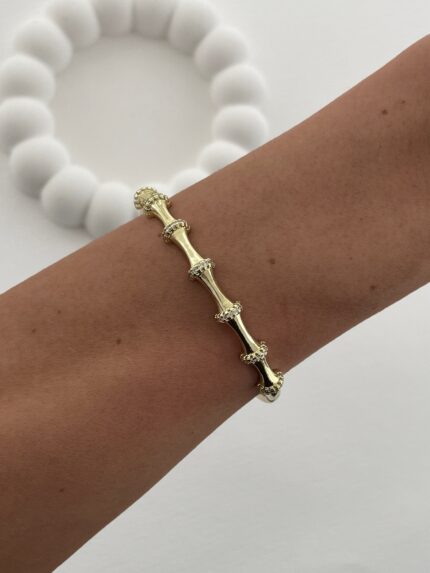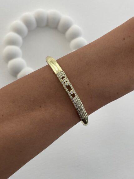 Özel Seri Zirkon Taşlı Kemik Tasarım Gold Kelepçe Bileklik