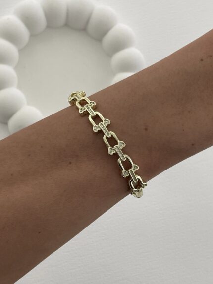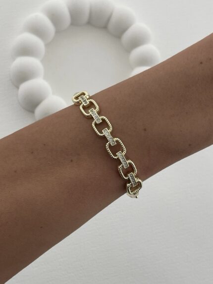Özel Seri Zirkon Taşlı Zincir Model Gold Kelepçe Bileklik