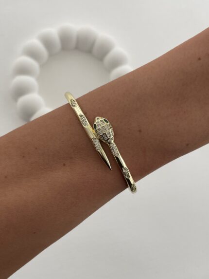 Özel Seri Zirkon Taşlı Yılan Tasarım Gold Kelepçe Bileklik