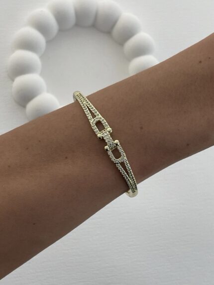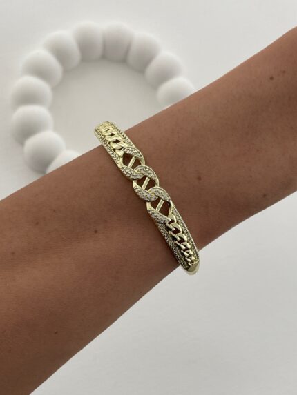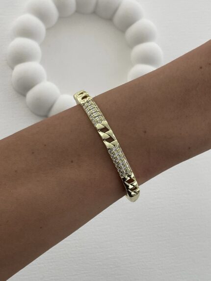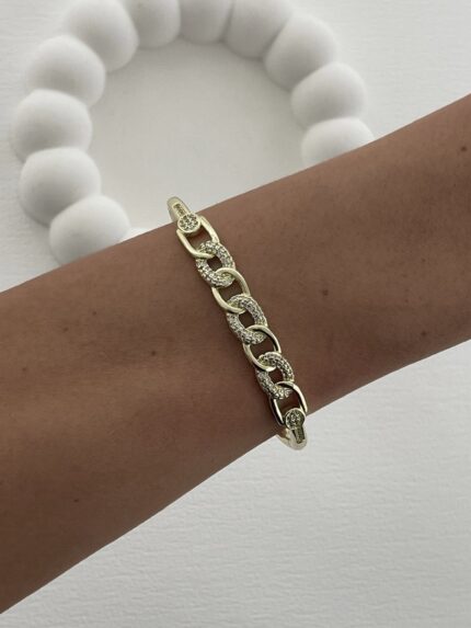 Özel Seri Zirkon Taşlı Zincir Tasarım Gold Kelepçe Bileklik