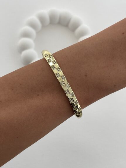 Özel Seri Sıra Zirkon Taş Detay Gold Kelepçe Bileklik