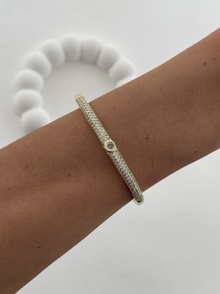Özel Seri Zirkon Taş Detay Gurmet Tasarım Gold Kelepçe Bileklik