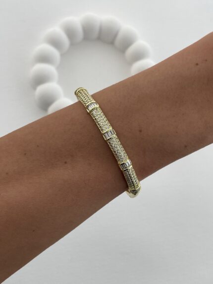 Özel Seri Zirkon&Baget Taş Detay Gold Kelepçe Bileklik