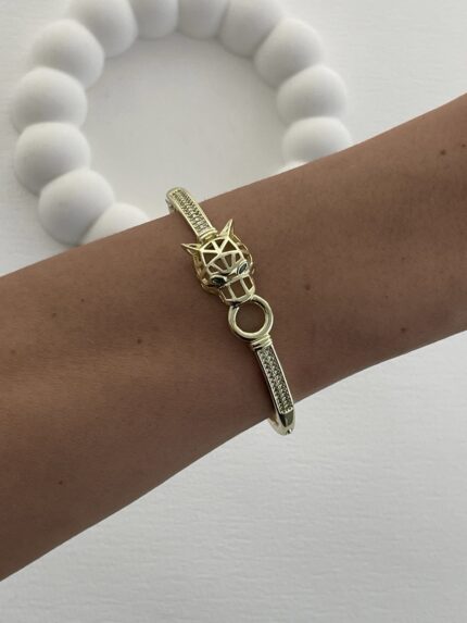 Özel Seri Yeşil Zirkon Taş Detay Kaplan Model Gold Kelepçe Bileklik