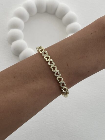 Özel Seri Kalp Tasarım Zirkon Taşlı Gold Kelepçe Bileklik