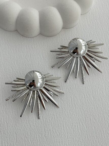 Özel Seri Yarım Güneş Tasarım Gümüş Küpe