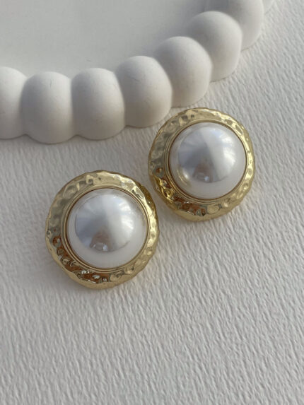 Özel Seri İnci Top Detay Yuvarlak Gold Küpe