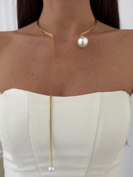 Özel Seri Sallantılı İnci Uç Detay Gold Choker Kolye