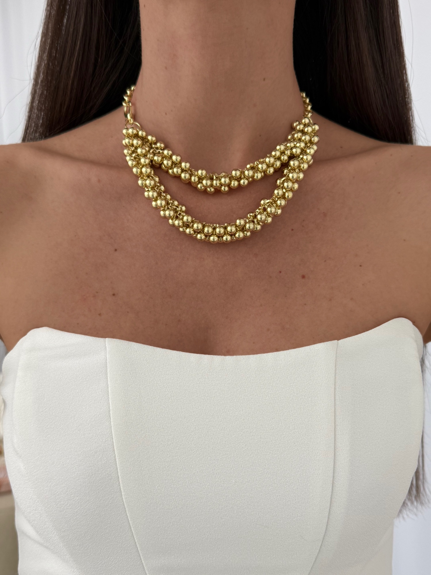 Özel Seri Sallantılı Topçuk Detay İkili Gold Kolye