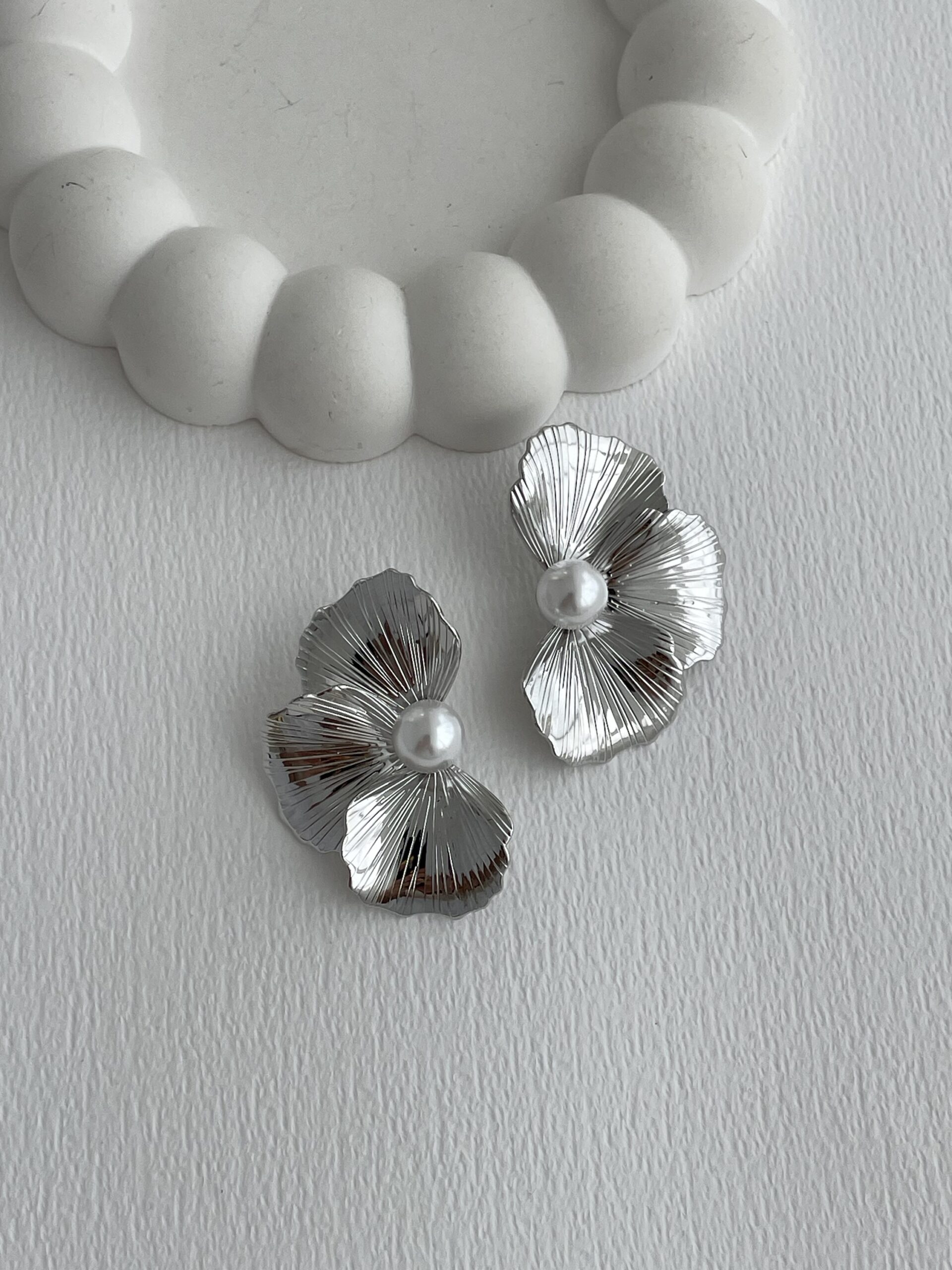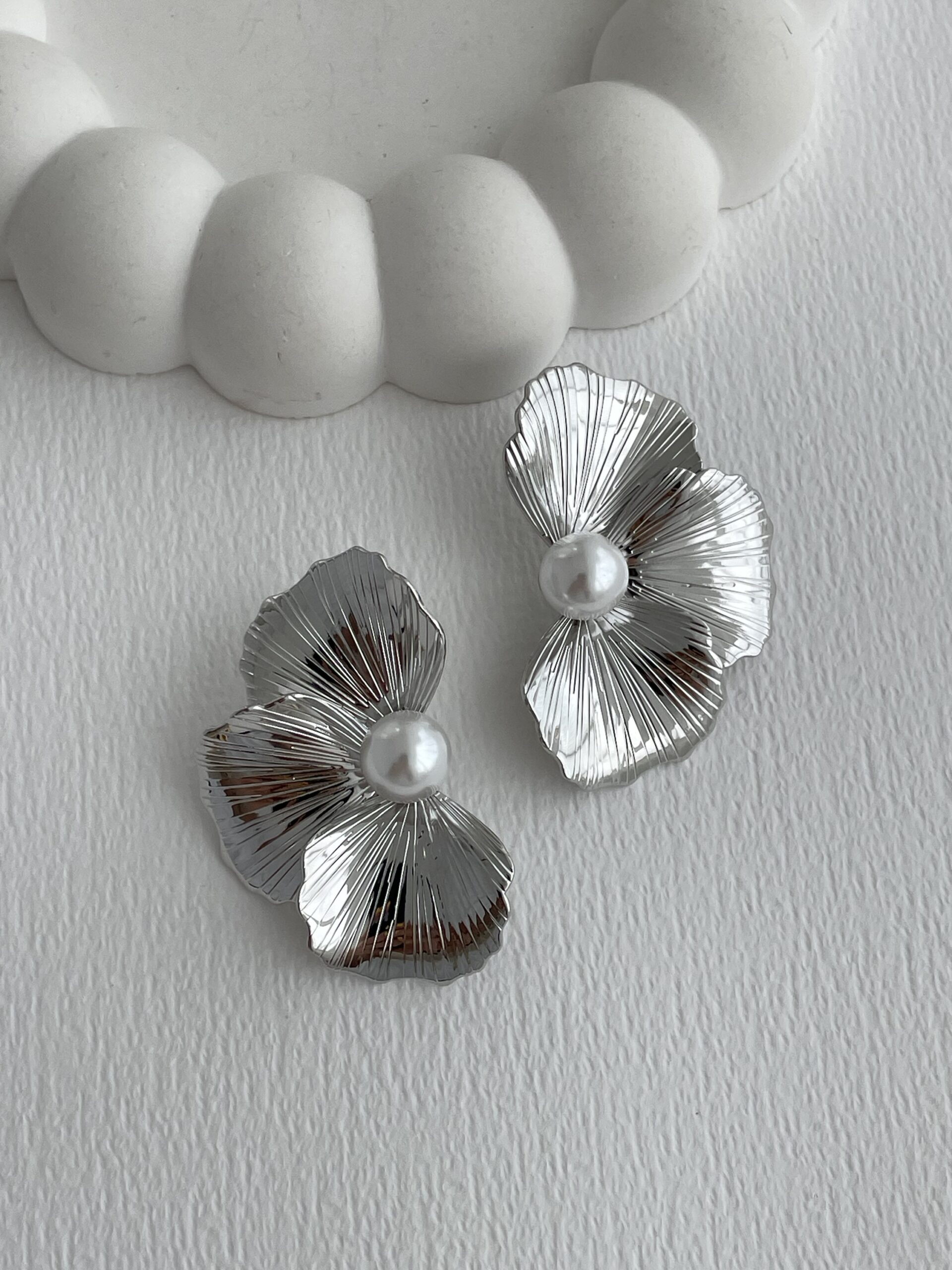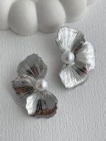 Özel Seri İnci Detay Yarım Çiçek Tasarım Gümüş Küpe