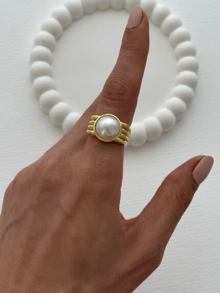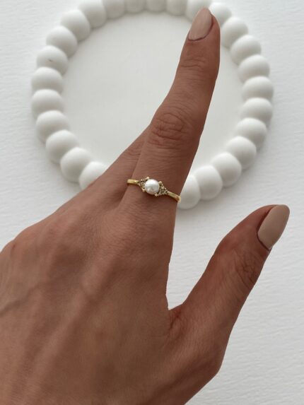 Özel Seri Ayarlanabilir Gold Tek Taş İnci Yüzük