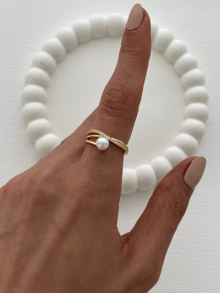 Özel Seri Ayarlanabilir Zirkon Taşlı Gold İnci Yüzük