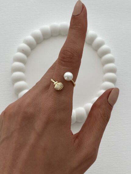 Özel Seri Ayarlanabilir Gold Deniz Kabuğu İnci Yüzük