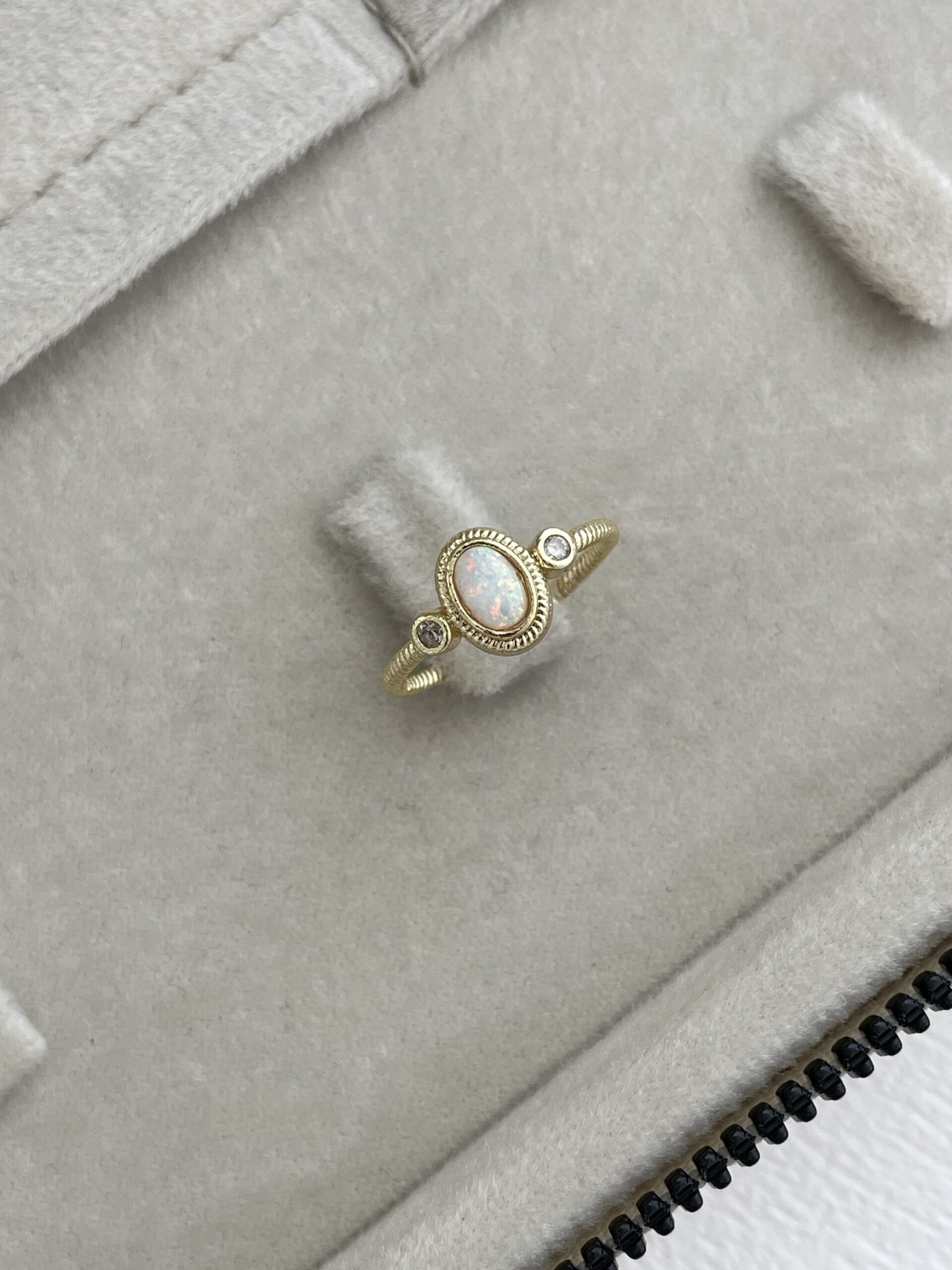Özel Seri Beyaz Opal Taş Gold Ayarlanabilir Yüzük