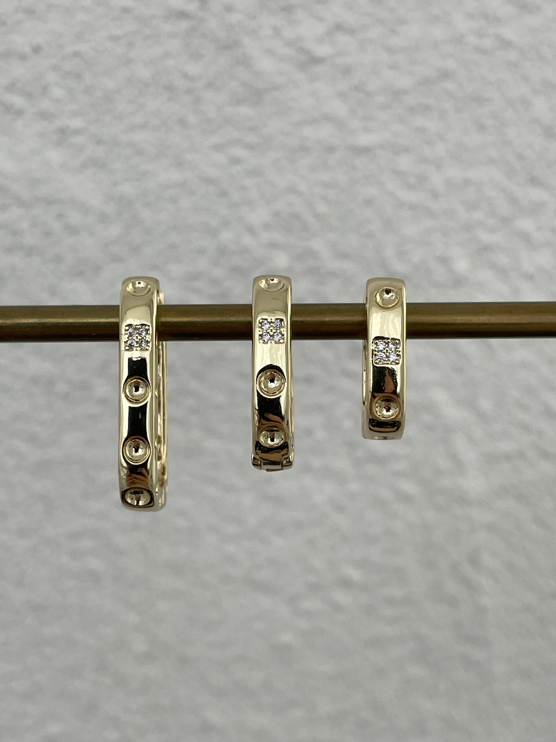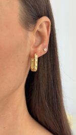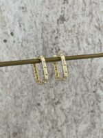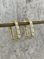 Özel Seri Zirkon Taşlı Büyük Dikdörtgen Gold Küpe