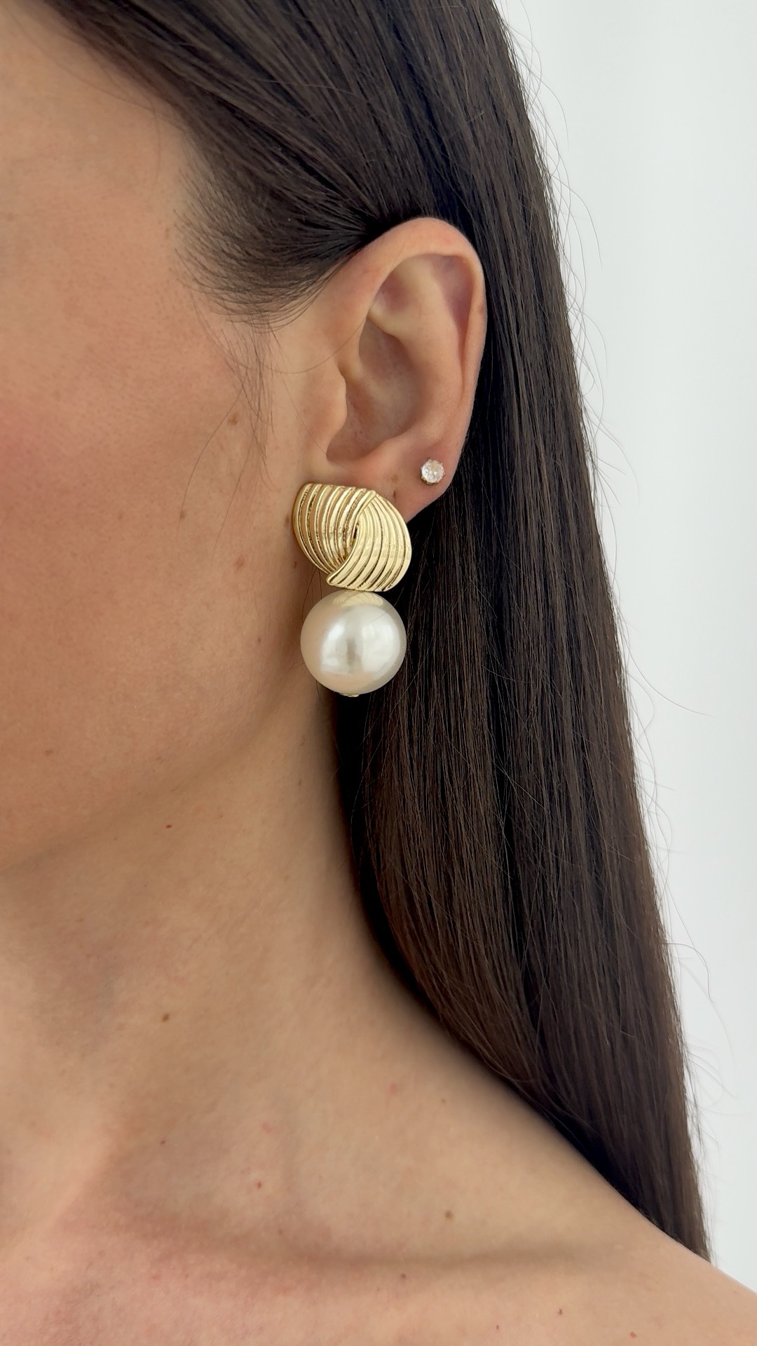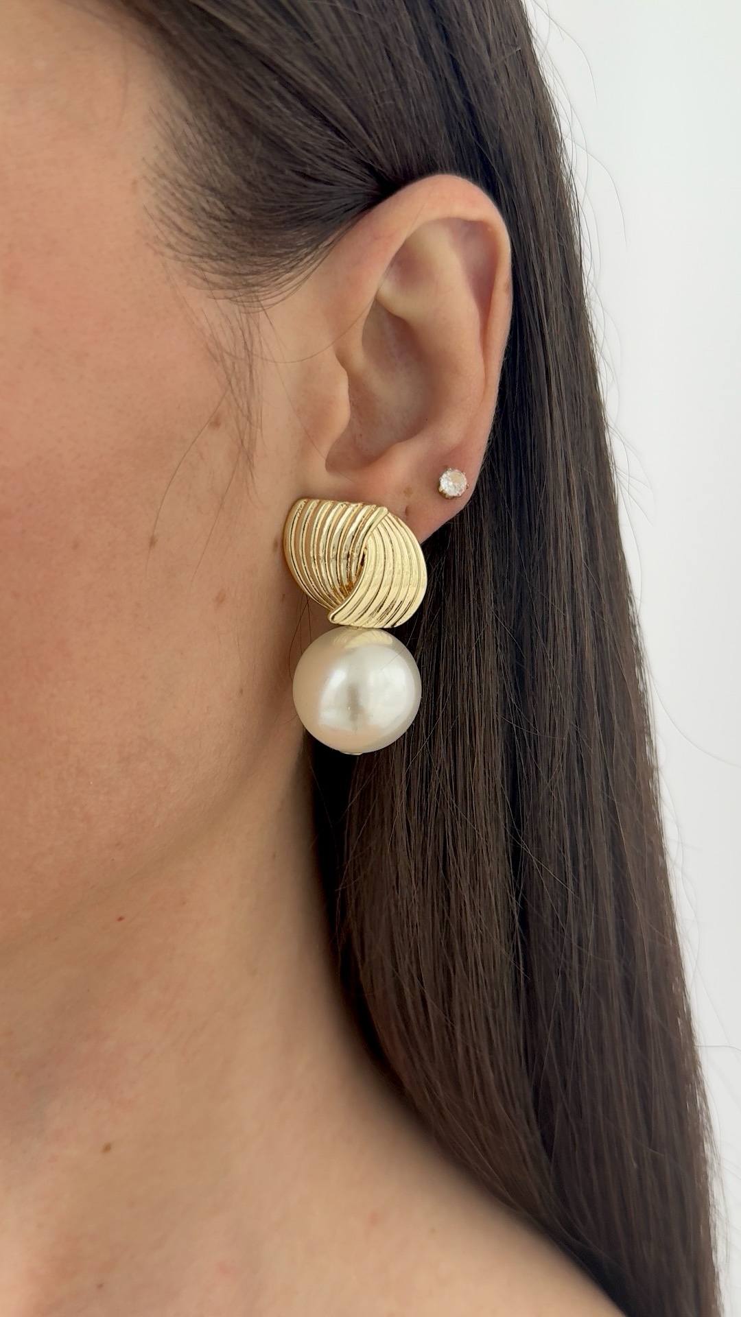 Özel Seri Tırtık Desen İnci Gold Küpe
