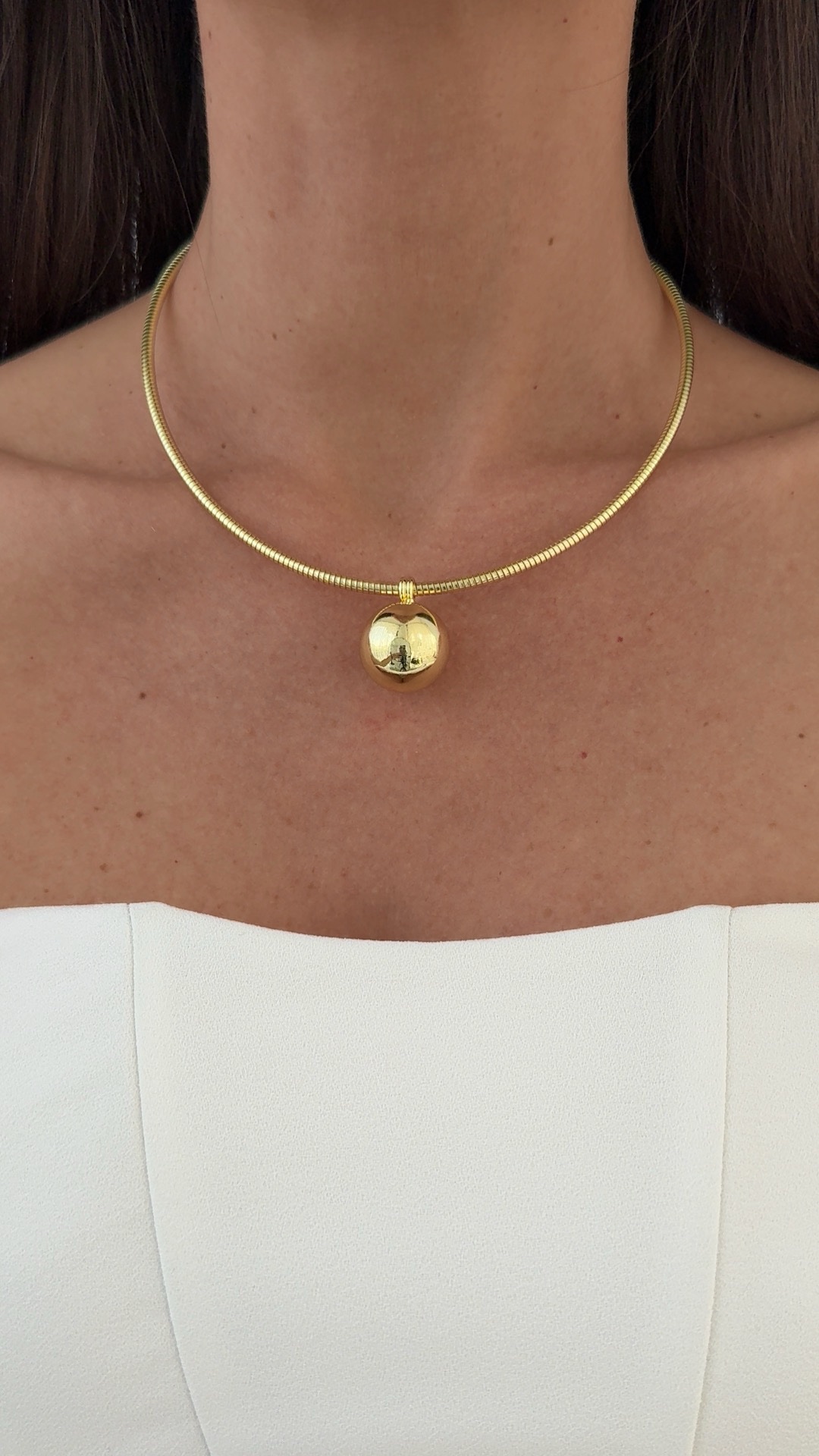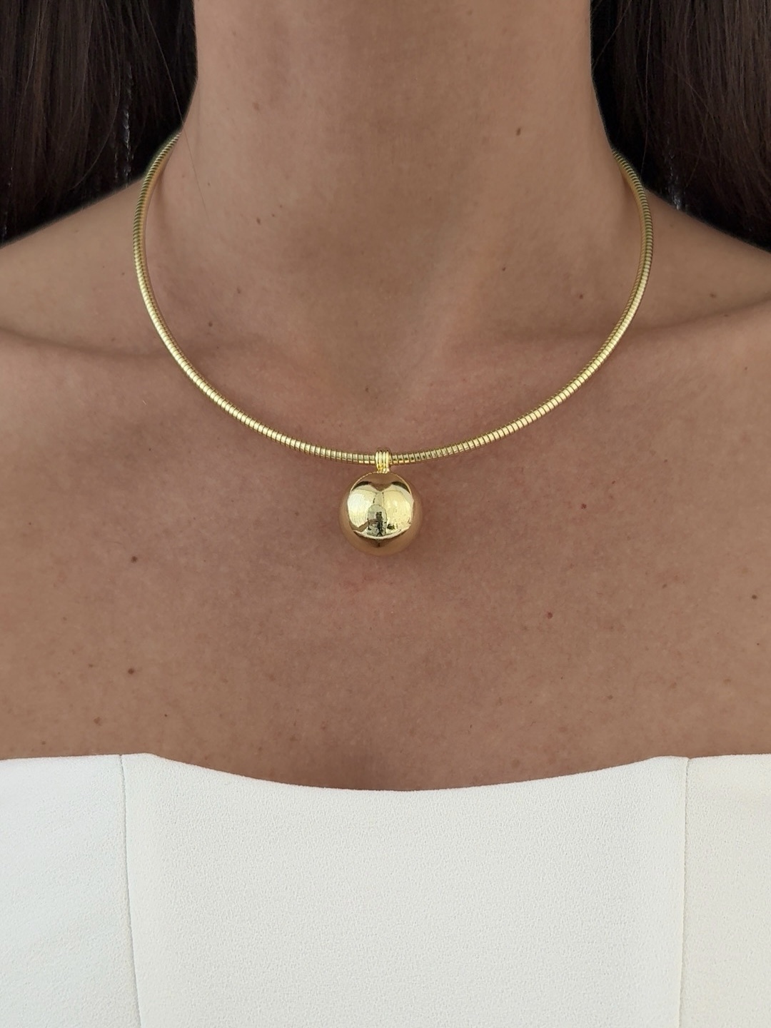 Özel Seri Tel Tasarım Top Detay Gold Choker Kolye
