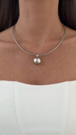 Özel Seri Tel Tasarım Top Detay Gümüş Choker Kolye