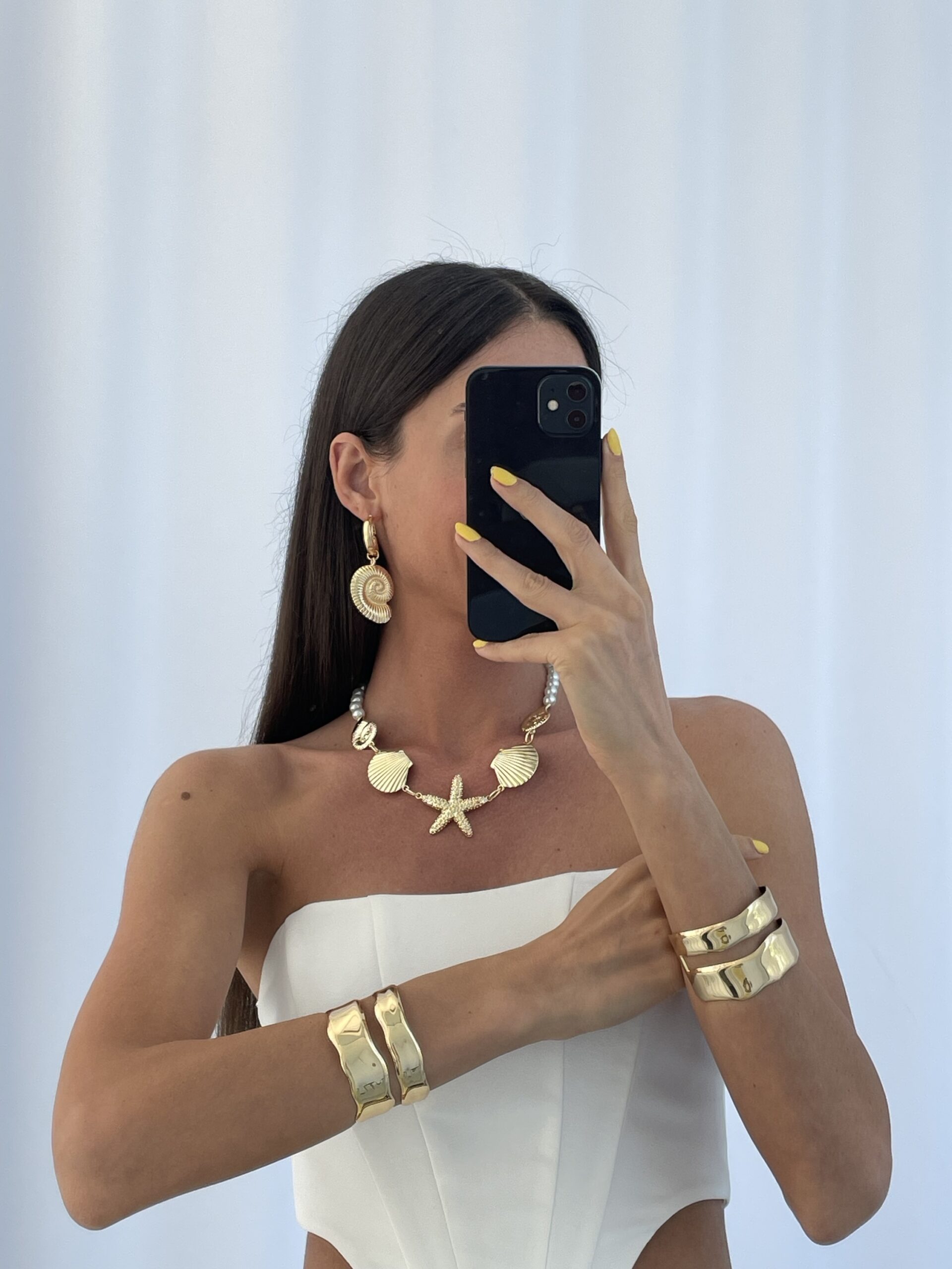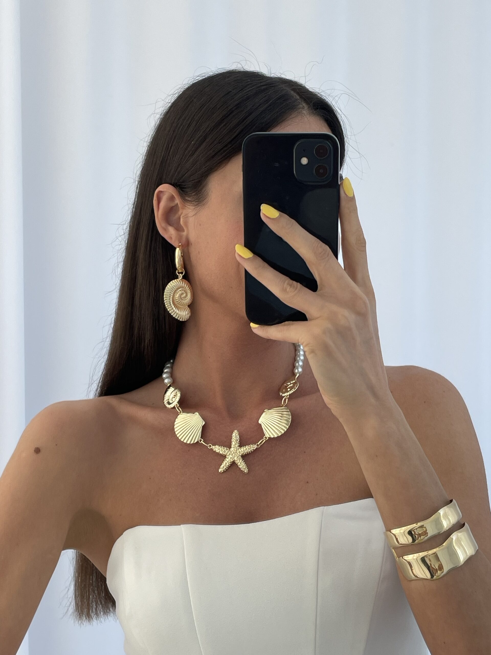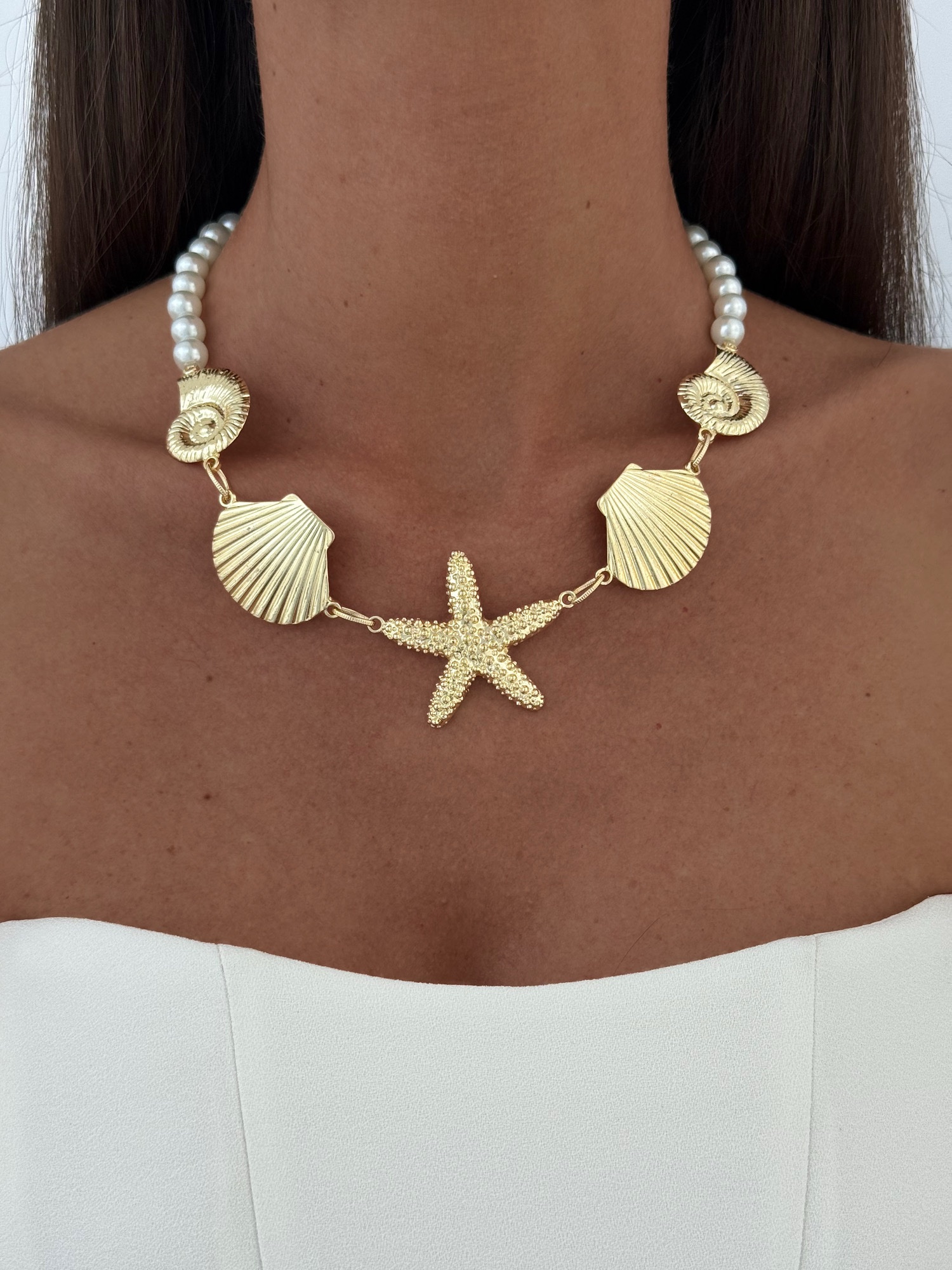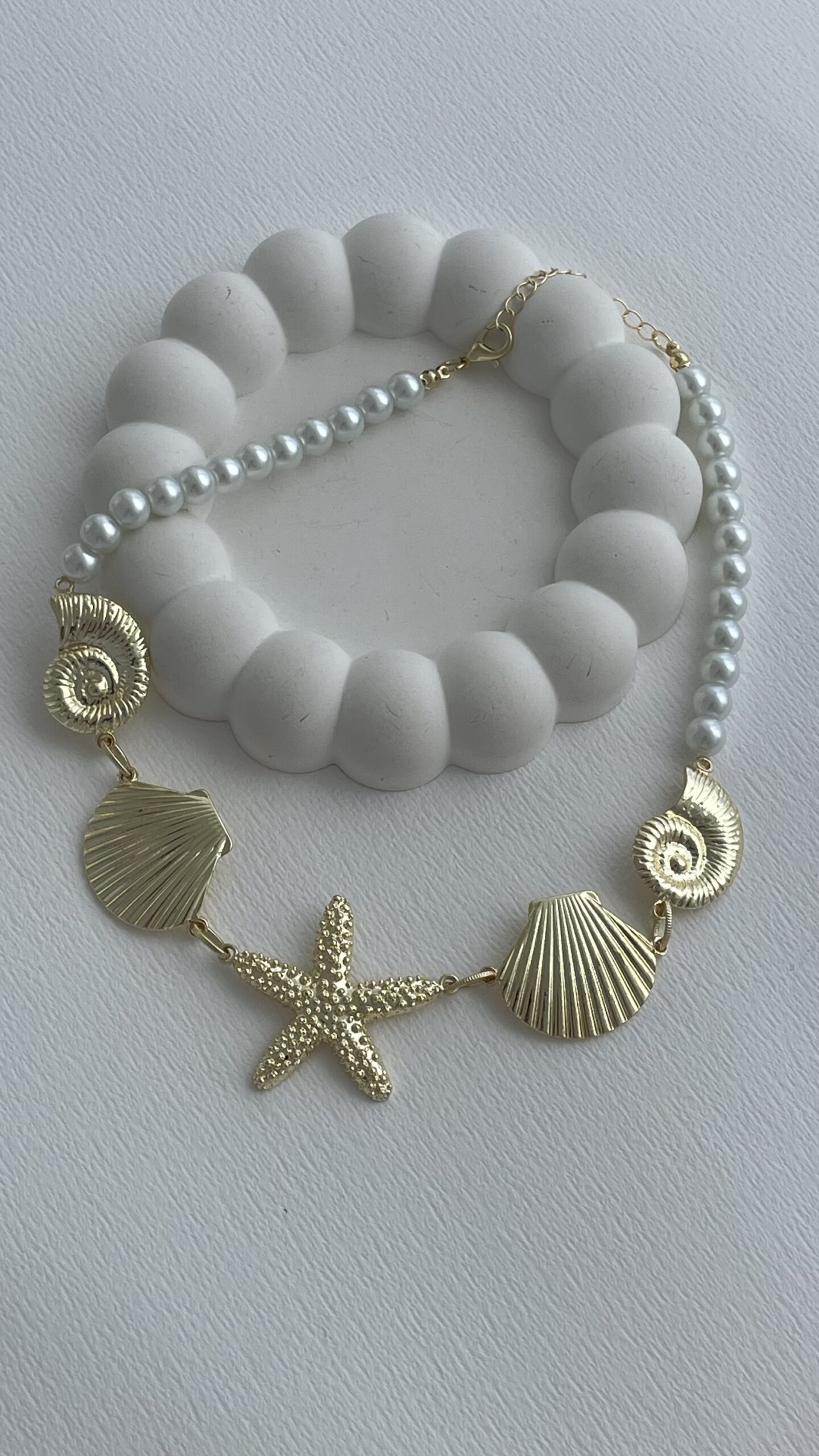 Özel Seri Deniz Kabuğu & Yıldız Beyaz Gold Kolye